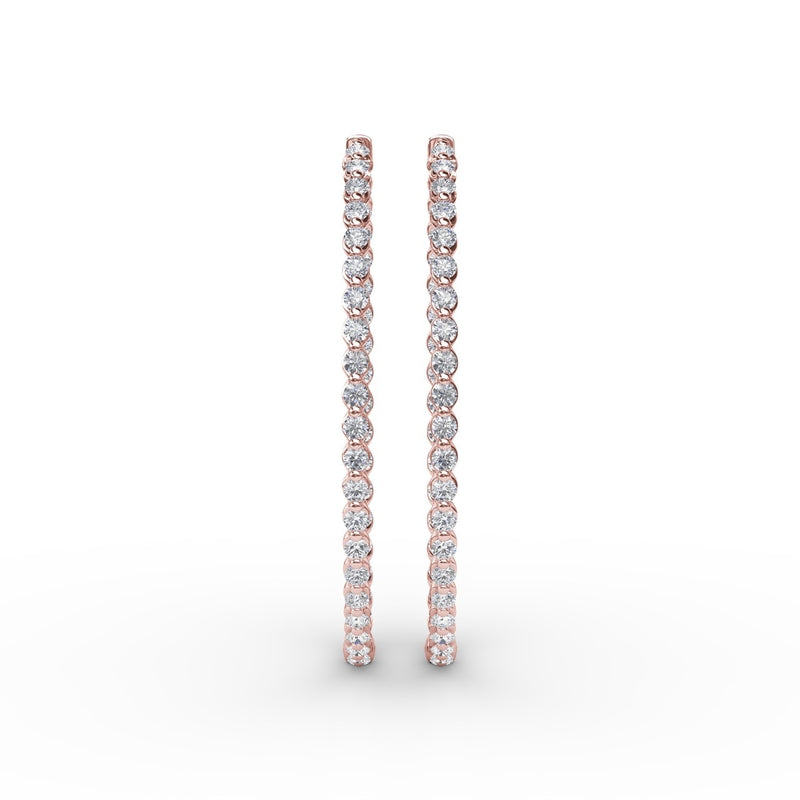 These beauty and the bezel set diamond hoop earrings are sure to showcase your sophisticated style. These earrings come in a variety of material types like 14k white gold, yellow gold, rose gold and can be customized with your jeweler. Classic Fana diamond earrings are perfect for that special woman in your life.
