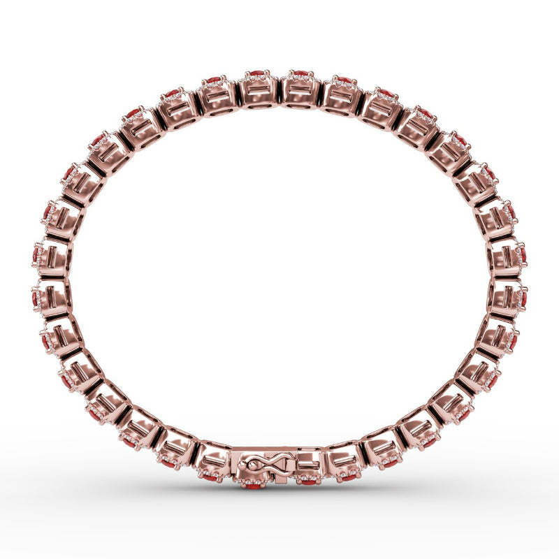 This elegant cushion cut ruby and diamond bracelet comes in a variety of material types like 14k white gold, yellow gold, rose gold and can be customized with your jeweler. Fana gemstone bracelets are perfect for that special woman in your life.