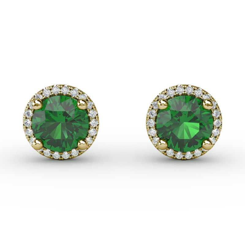 These dazzling brilliant cut emerald and diamond stud earrings come in a variety of material types like 14k white gold, yellow gold, rose gold and can be customized with your jeweler. Fana diamond earrings are perfect for that special woman in your life.