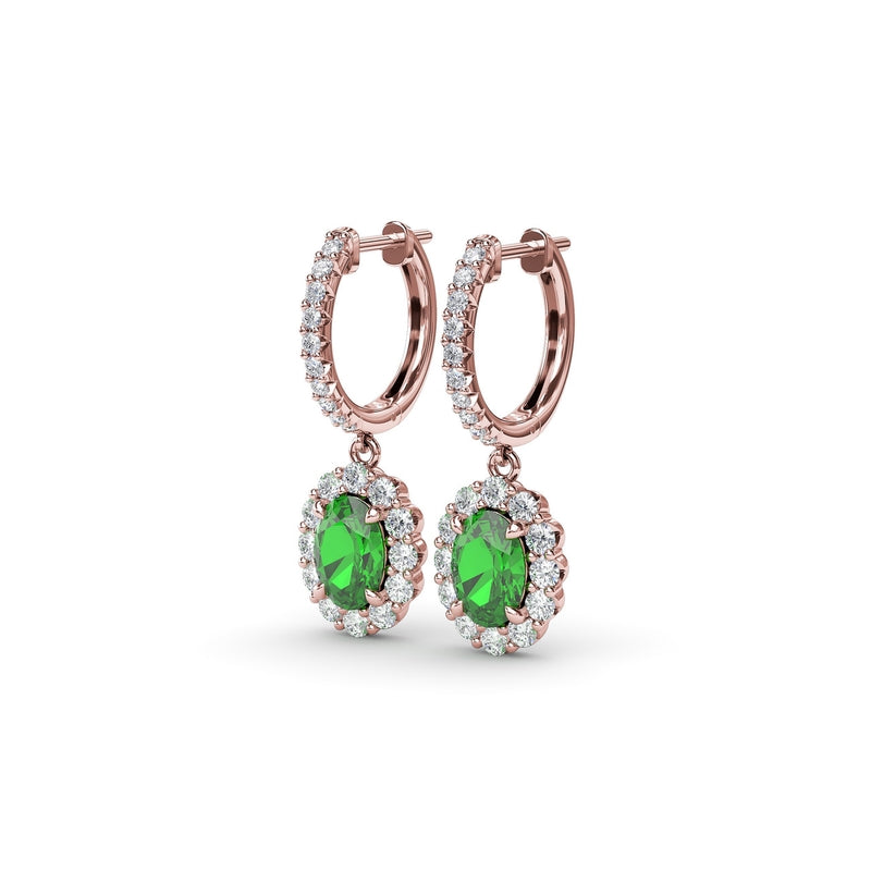 Radiate elegance with these dazzling emerald and diamond drop earrings. These earrings come in a variety of material types like 14k white gold, yellow gold, rose gold and can be customized with your jeweler. Classic Fana diamond earrings are perfect for that special woman in your life.