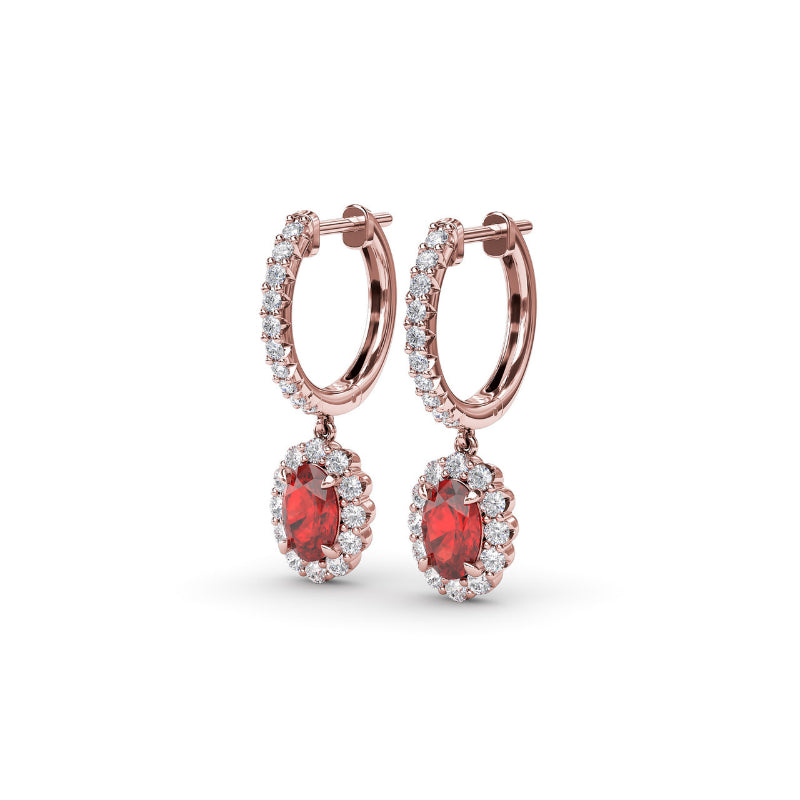 Radiate elegance with these dazzling ruby and diamond drop earrings. These earrings come in a variety of material types like 14k white gold, yellow gold, rose gold and can be customized with your jeweler. Classic Fana diamond earrings are perfect for that special woman in your life.