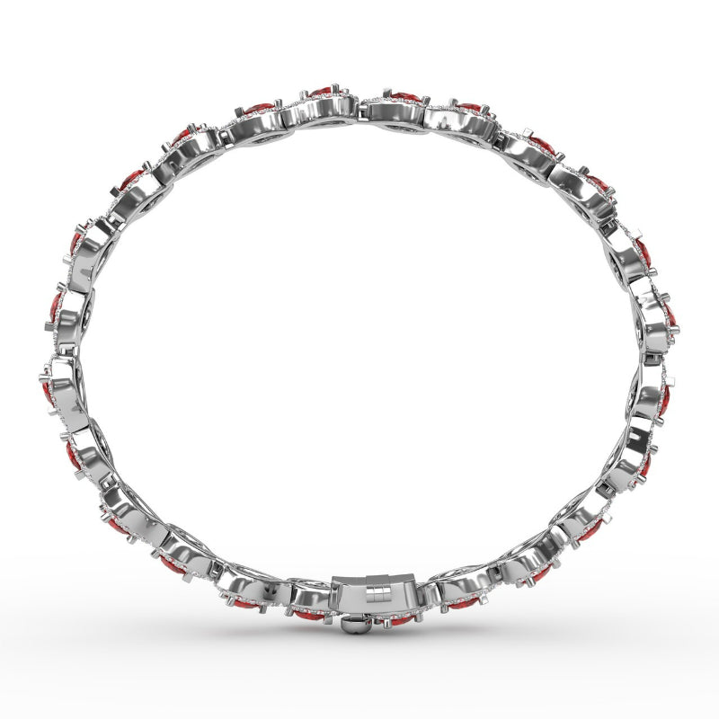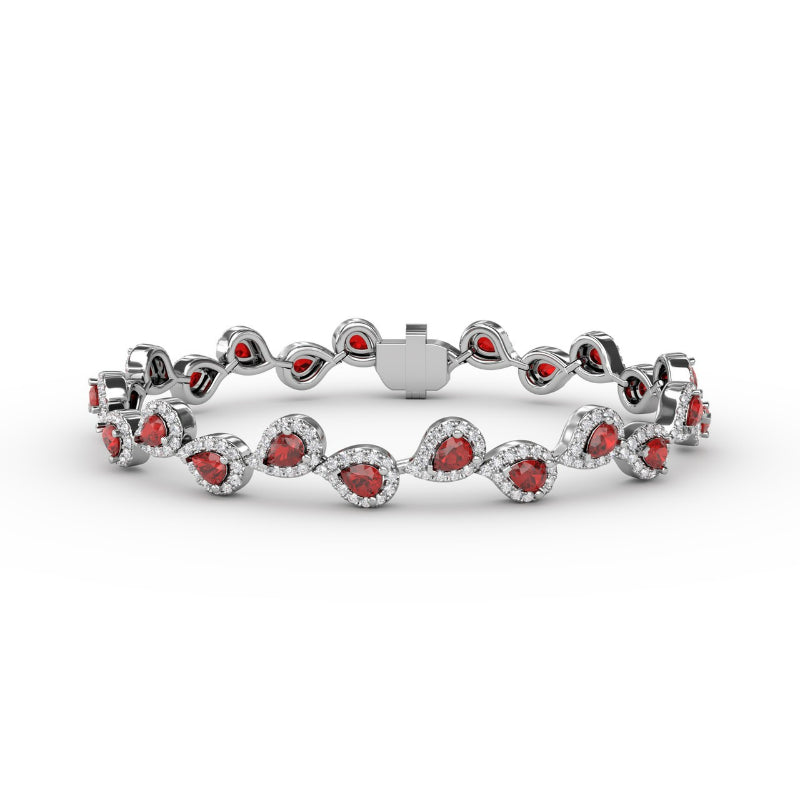 This decorated ruby and diamond bracelet comes in a variety of material types like 14k white gold, yellow gold, rose gold and can be customized with your jeweler. Classic Fana gemstone bracelets are perfect for that special woman in your life.
