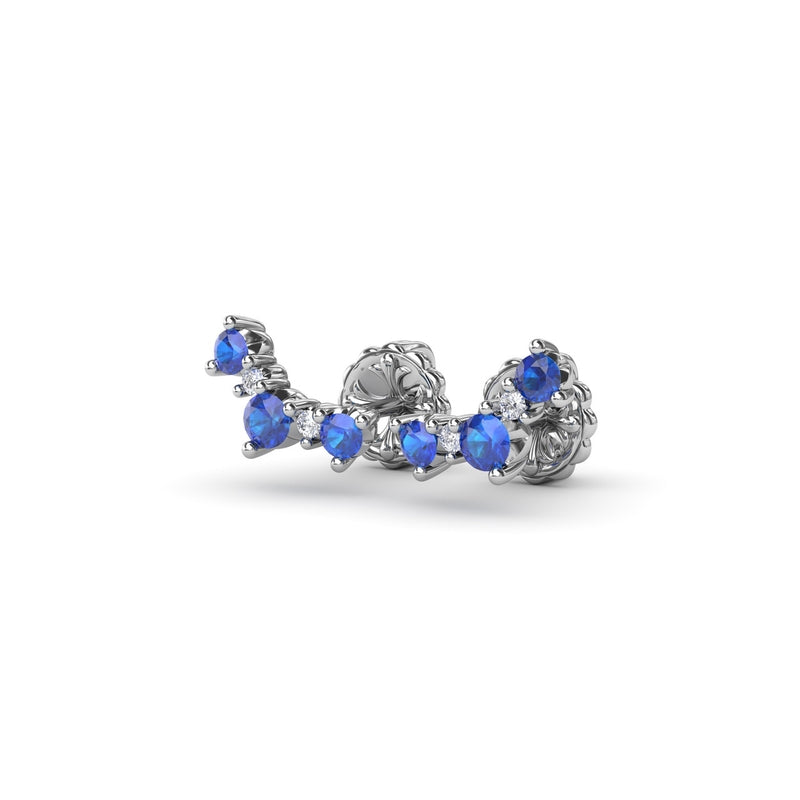 Harmoniously set, these sapphire and diamond climber earrings are sure to add some sparkle in your life. These earrings come in a variety of material types like 14k white gold, yellow gold, rose gold and can be customized with your jeweler. Classic Fana diamond earrings are perfect for that special woman in your life.