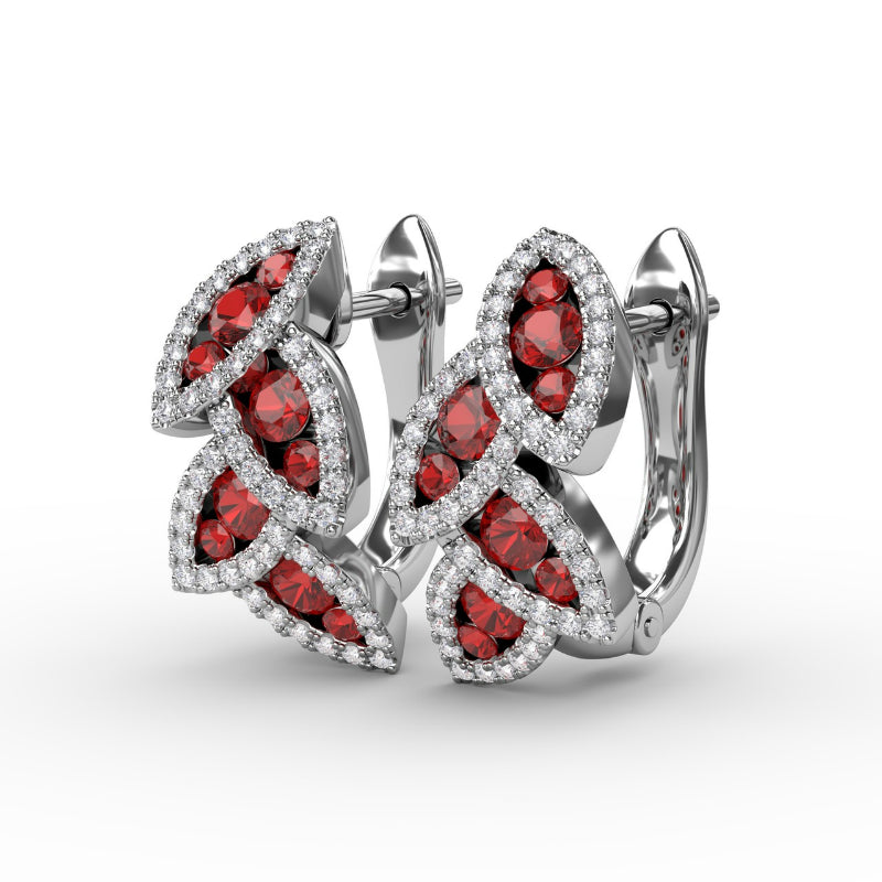 Fana Glam Galore Ruby and Diamond Leaf Earrings