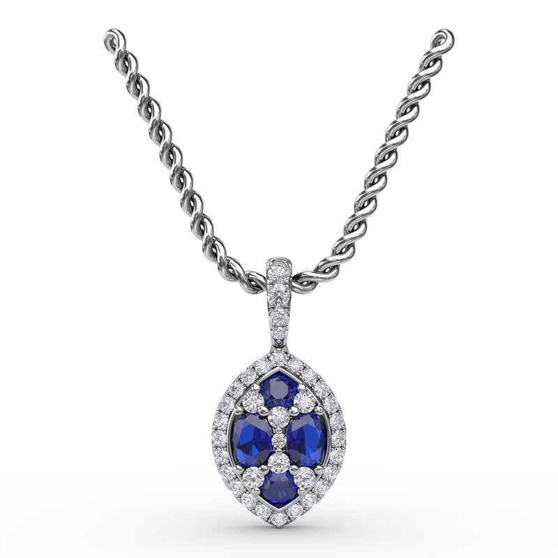 This marquise sapphire and diamond pendant comes in a variety of material types like 14k white gold, yellow gold, rose gold and can be customized with your jeweler. Fana gemstone pendants are perfect for that special woman in your life