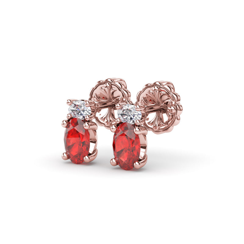 Accessorize your look with these oval ruby and diamond stud earrings. These earrings come in a variety of material types like 14k white gold, yellow gold, rose gold and can be customized with your jeweler. Classic Fana diamond earrings are perfect for that special woman in your life.