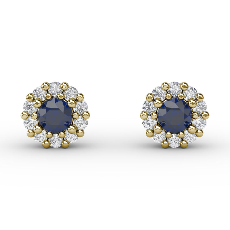 The perfect mix of vintage and stylish, these shared prong sapphire and diamond studs come in a variety of material types like 14k white gold, yellow gold, rose gold and can be customized with your jeweler. Classic Fana gemstone earrings are perfect for that special woman in your life.