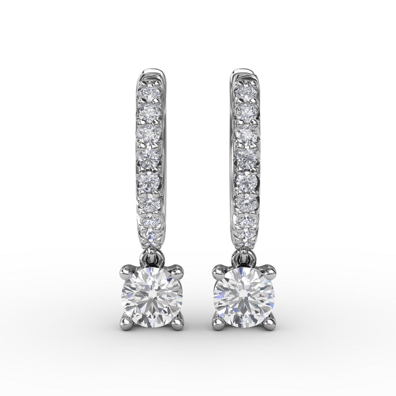 These single diamond drop earrings come in a variety of material types like 14k white gold, yellow gold, rose gold and can be customized with your jeweler. Classic Fana gemstone earrings are perfect for that special woman in your life.