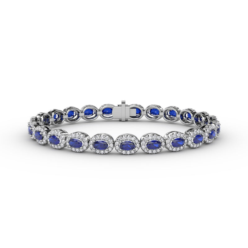 This striking oval sapphire and diamond bracelet comes in a variety of material types like 14k white gold, yellow gold, rose gold and can be customized with your jeweler. Fana gemstone bracelets are perfect for that special woman in your life.
