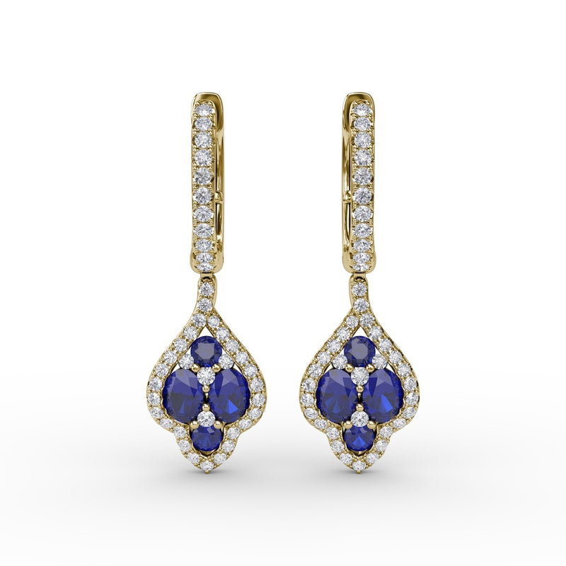 These vintage sapphire and diamond drop earrings come in a variety of material types like 14k white gold, yellow gold, rose gold and can be customized with your jeweler. Fana diamond earrings are perfect for that special woman in your life.