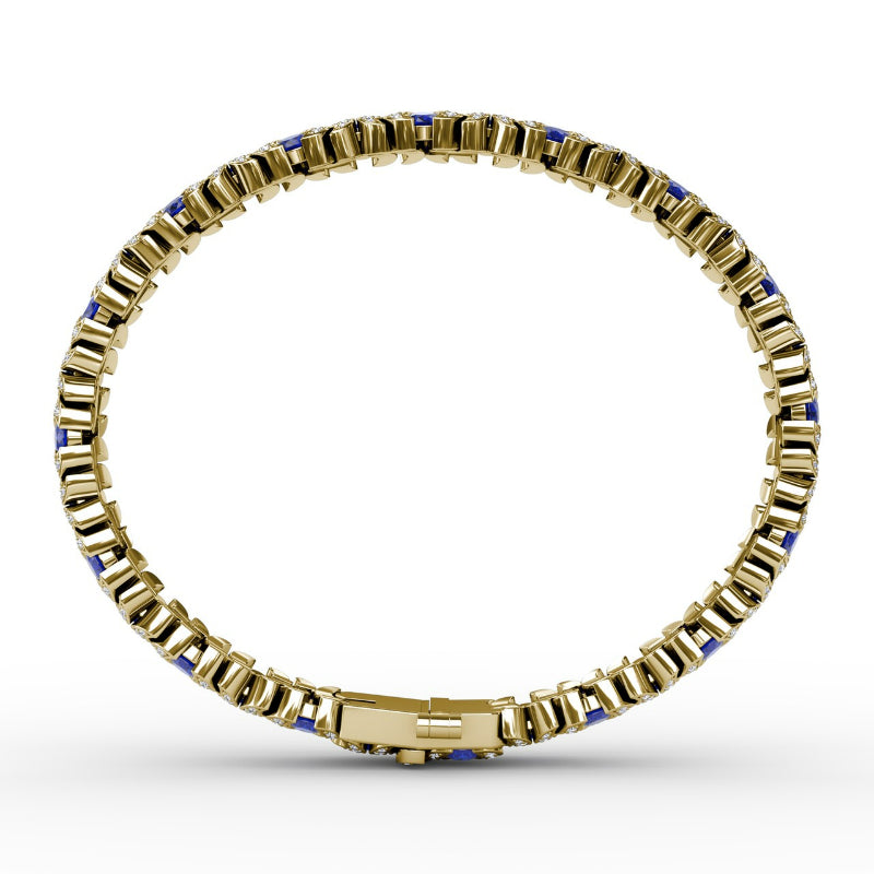 This wave sapphire and diamond bracelet comes in a variety of material types like 14k white gold, yellow gold, rose gold and can be customized with your jeweler. Fana gemstone bracelets are perfect for that special woman in your life.