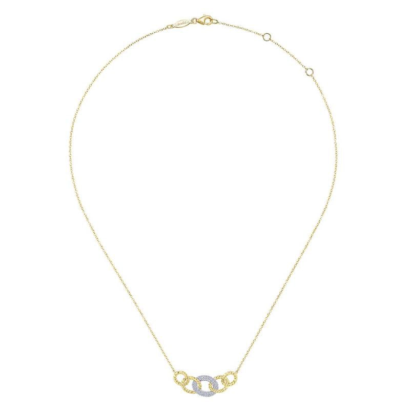 14k Yellow & White Gold Chain Link Diamond Fashion Necklace