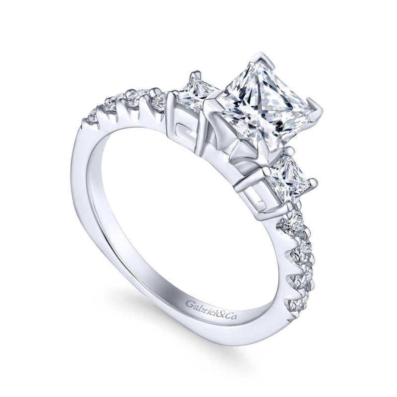 14k White Gold 3 Stone Engagement Ring. SETTING ONLY; center stone not included