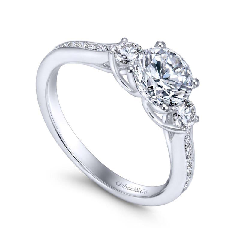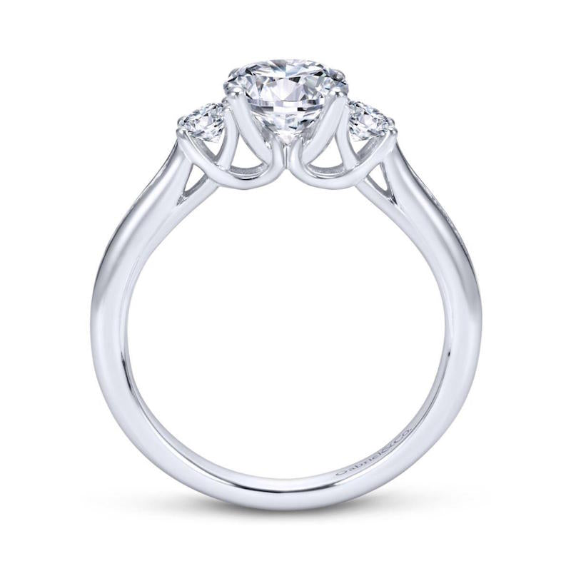 14k White Gold 3 Stone Engagement Ring. SETTING ONLY; center stone not included