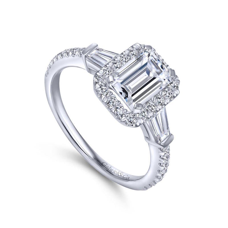 14k White Gold Halo Engagement Ring. SETTING ONLY; center stone not included