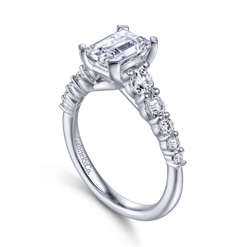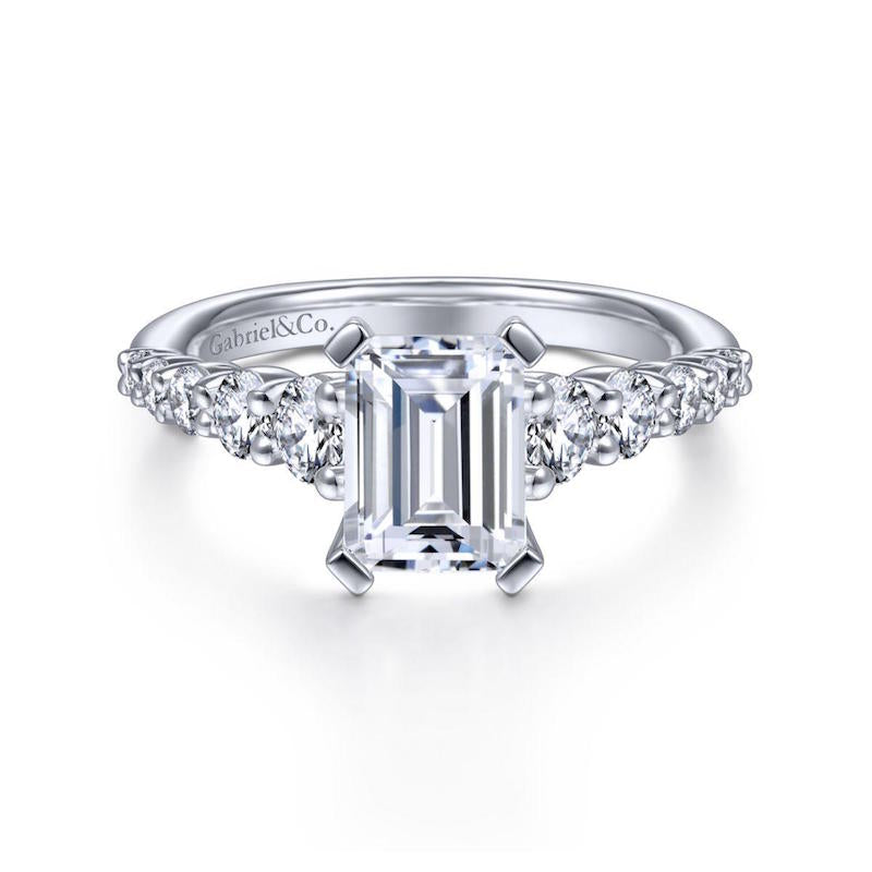 14k White Gold Straight Engagement Ring. SETTING ONLY; center stone not included