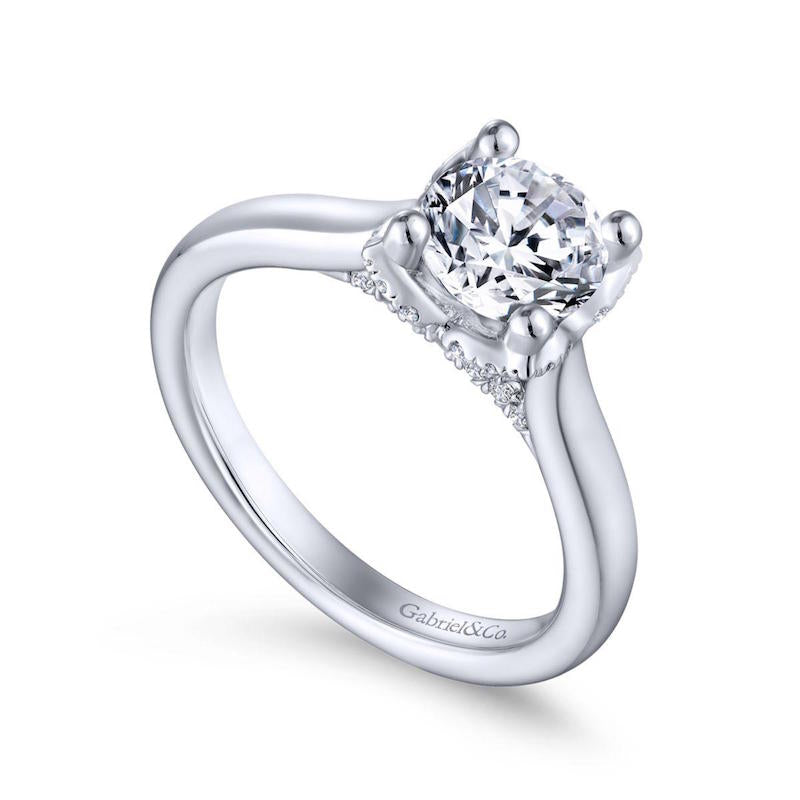 14k White Gold Straight Engagement Ring. SETTING ONLY; center stone not included
