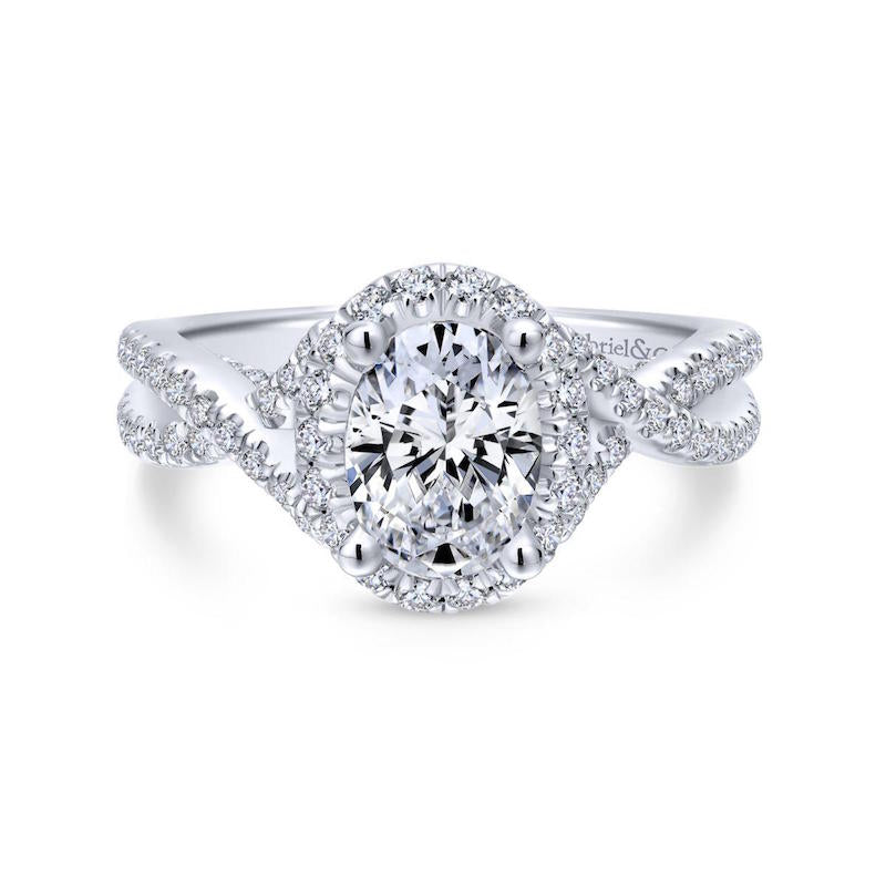 14k White Gold Halo Engagement Ring. SETTING ONLY; center stone not included