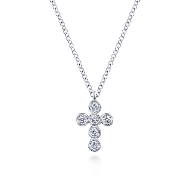 14k White Gold Round Diamond Cross Necklace