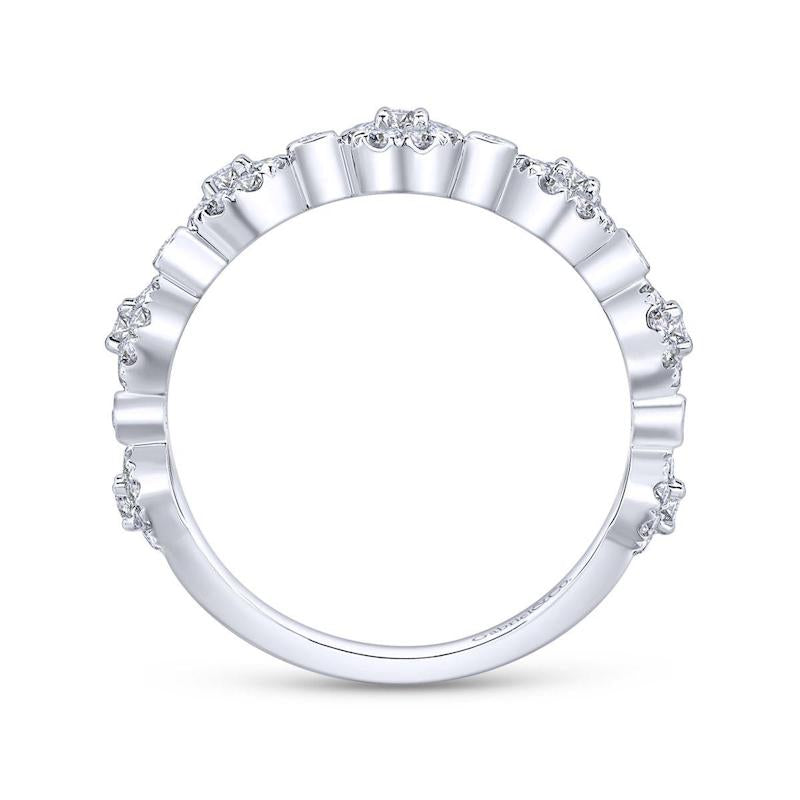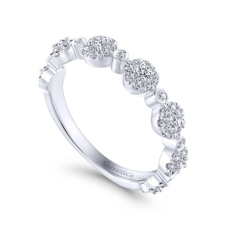 What goes around comes around with this stackable ring featuring round diamond clusters and individual bezel set round diamonds.