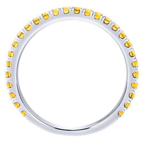 A timeless stackable ring with a sleek straight silhouette and dozens of sunny citrine stones. Crafted from luxe 14K white gold, this November birthstone ring effuses any ensemble with a pop of rich golden yellow color.