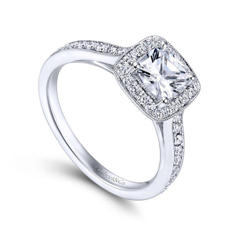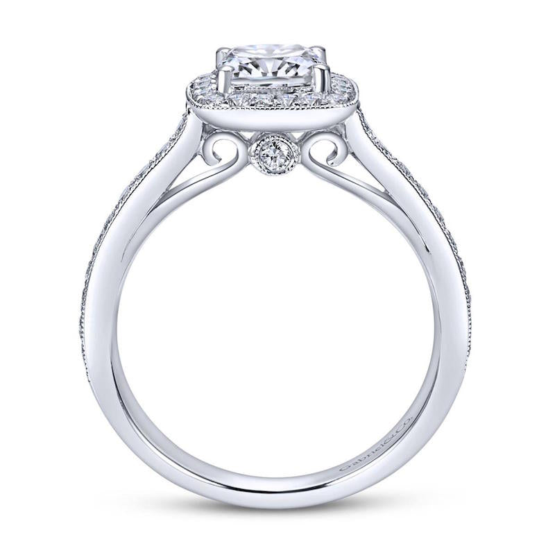 14k White Gold Halo Engagement Ring. SETTING ONLY; center stone not included