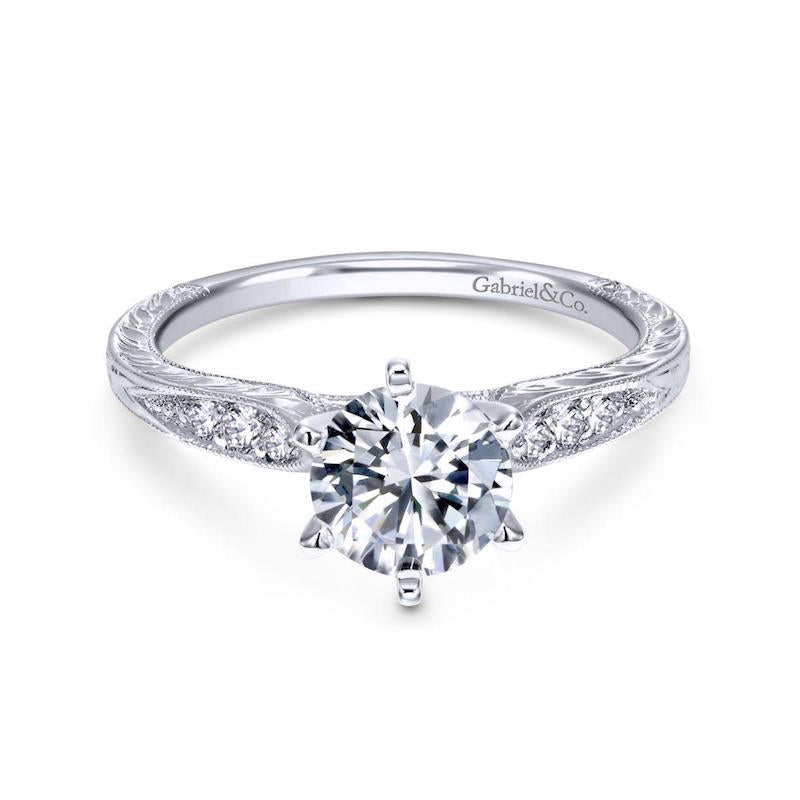 14k White Gold Straight Engagement Ring. SETTING ONLY; center stone not included