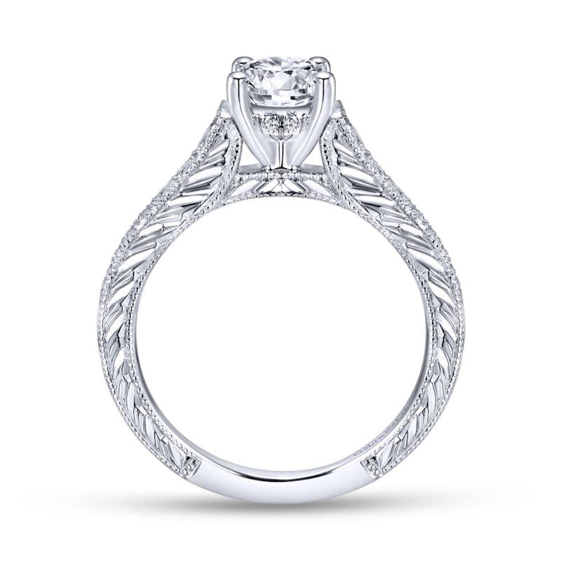 14k White Gold Straight Engagement Ring. SETTING ONLY; center stone not included