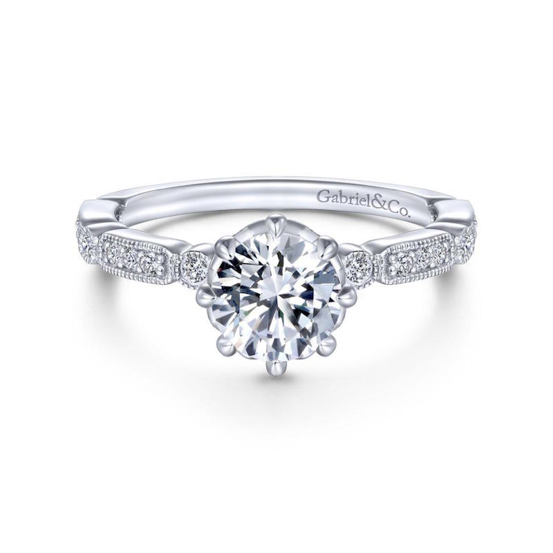 14k White Gold Straight Engagement Ring. SETTING ONLY; center stone not included