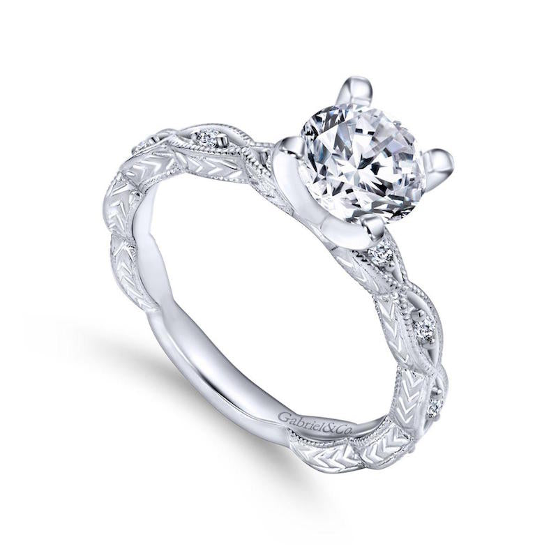 14k White Gold Straight Engagement Ring. SETTING ONLY; center stone not included
