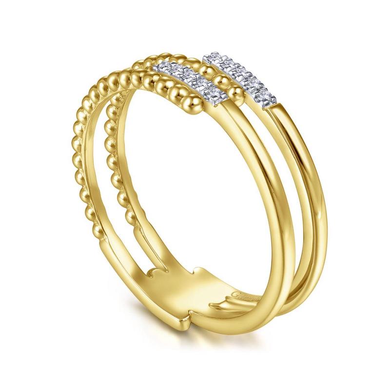 14k Yellow Gold Beaded Fashion Diamond Ring