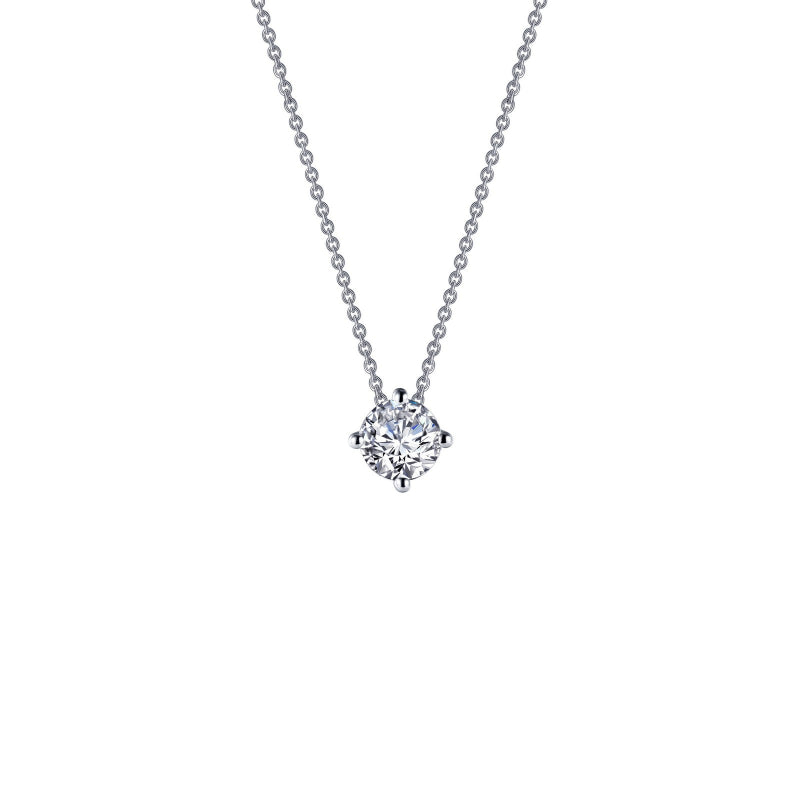 Simple yet charming. This adjustable round solitaire necklace is set with Lafonn's signature Lassaire simulated diamonds in sterling silver bonded with platinum. Simulated diamond is 5. 5mm in diameter.