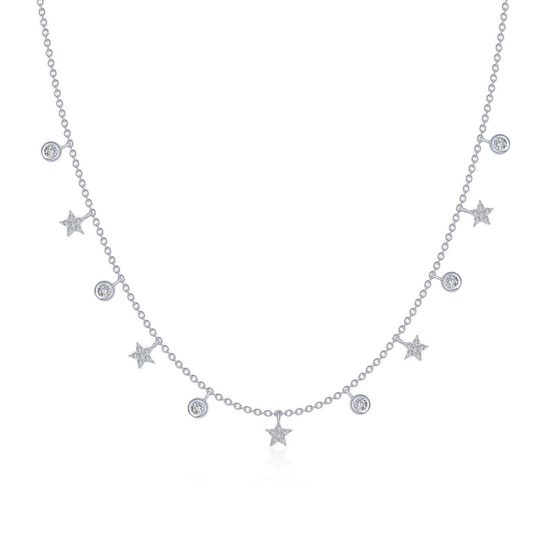 Dainty and chic. This adjustable alternating starfall necklace features Lafonn's signature Lassaire simulated diamonds in sterling silver bonded with platinum.