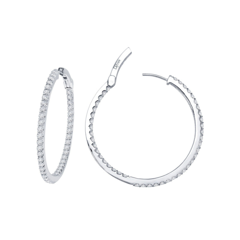 Fun and elegant. These inside out hoop earrings are set with Lafonn's signature Lassaire simulated diamonds in sterling silver bonded with platinum. 30 mm diameter