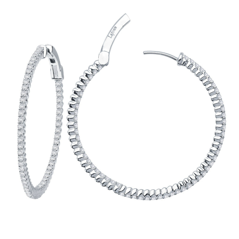 Fun and elegant. These inside out hoop earrings are set with Lafonn's signature Lassaire simulated diamonds in sterling silver bonded with platinum. 50 mm diameter