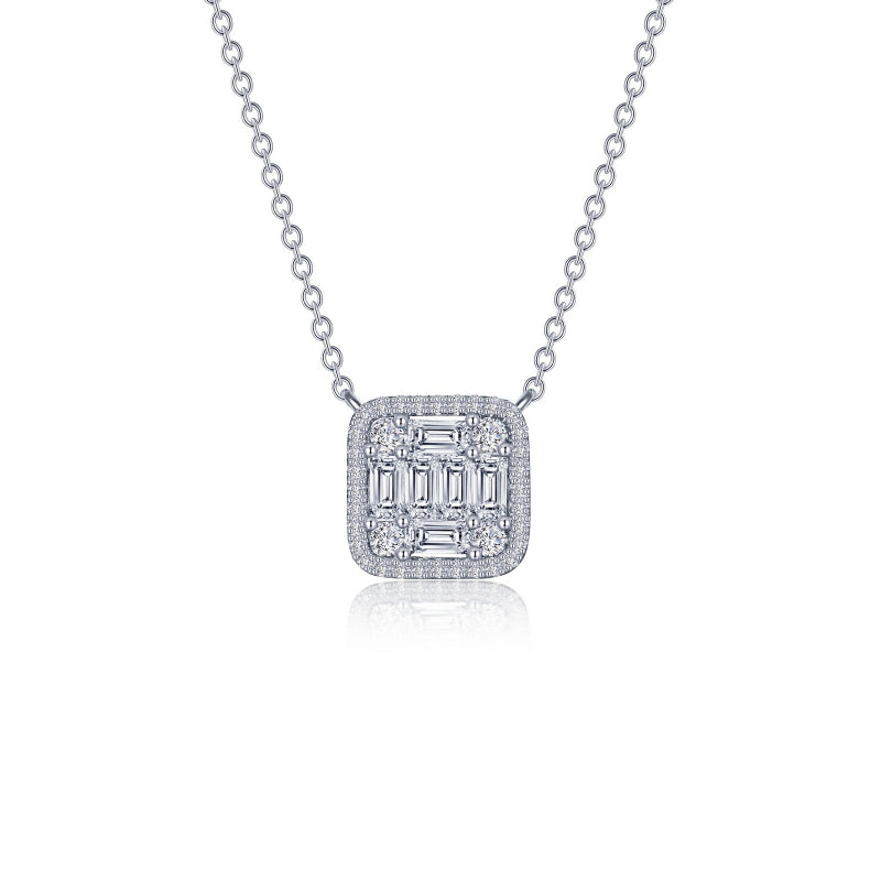 Simple and charming. This radiant halo necklace is set with Lafonn's signature Lassaire simulated diamonds in sterling silver bonded with platinum.