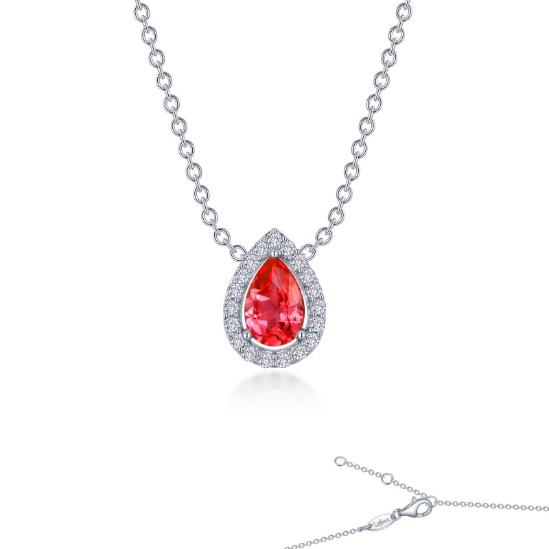 A statement of elegance. This adjustable halo necklace features a pear-shaped padparadscha fancy lab-grown sapphire and Lafonn's signature Lassaire simulated diamonds. The necklace is set in sterling silver bonded with platinum.