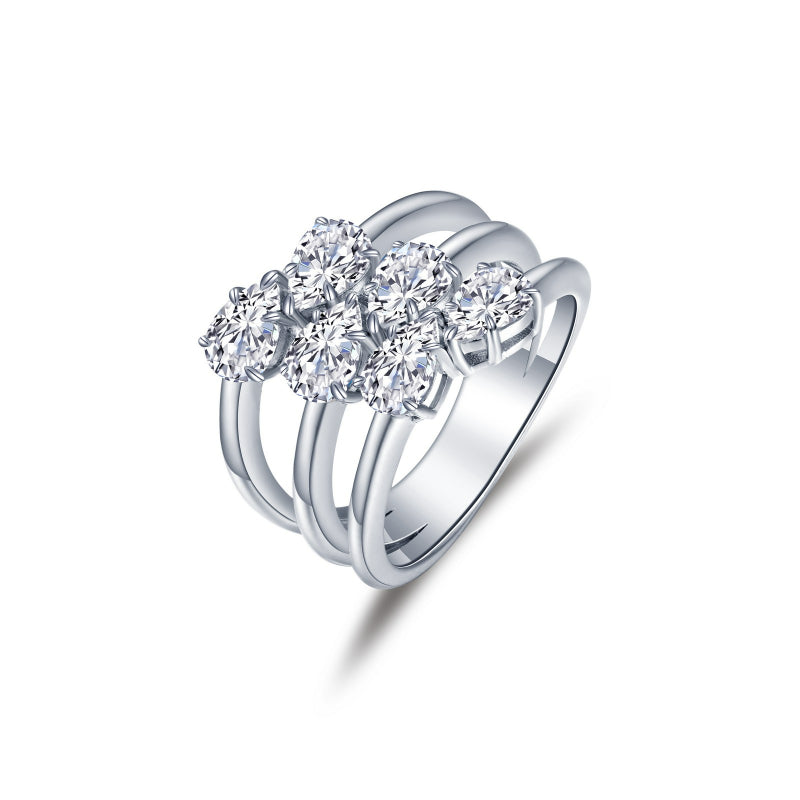 Simple yet stylish. This modern open cut out band is adorned with Lafonn's signature Lassaire pear-shaped simulated diamonds and is set in sterling silver bonded with platinum.