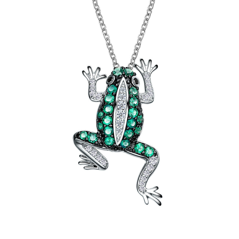 Whimsical and fun. This cute and sassy little frog adjustable necklace is set wth Lafonn's signature clear, green, and black simulated diamonds in sterling silver bonded with platinum. Pendant Dimensions: 15. 5 mm x 26 mm.