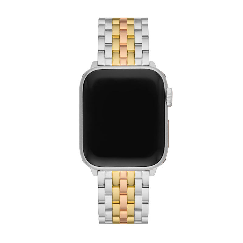 Elevate your look with a signature MICHELE tri-tone 18K gold-plated seven link bracelet band for Apple Watch. It is made for use with the Series 1, 2, 3, 4, 5 , 6, 7 or 8 Apple Watch and includes two interchangeable endpieces compatible with both 38/40/41mm and 42/44/45/49mm styles.