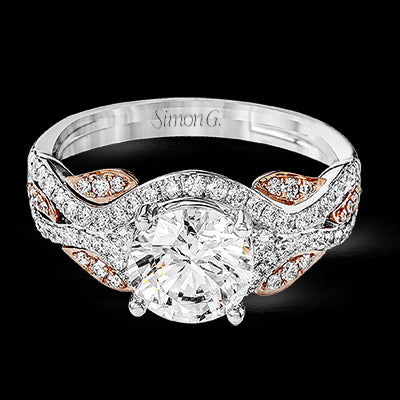 Presenting a dramatic contemporary design, this two-tone engagement ring is highlighted with .42 ctw of sparkling white diamonds.