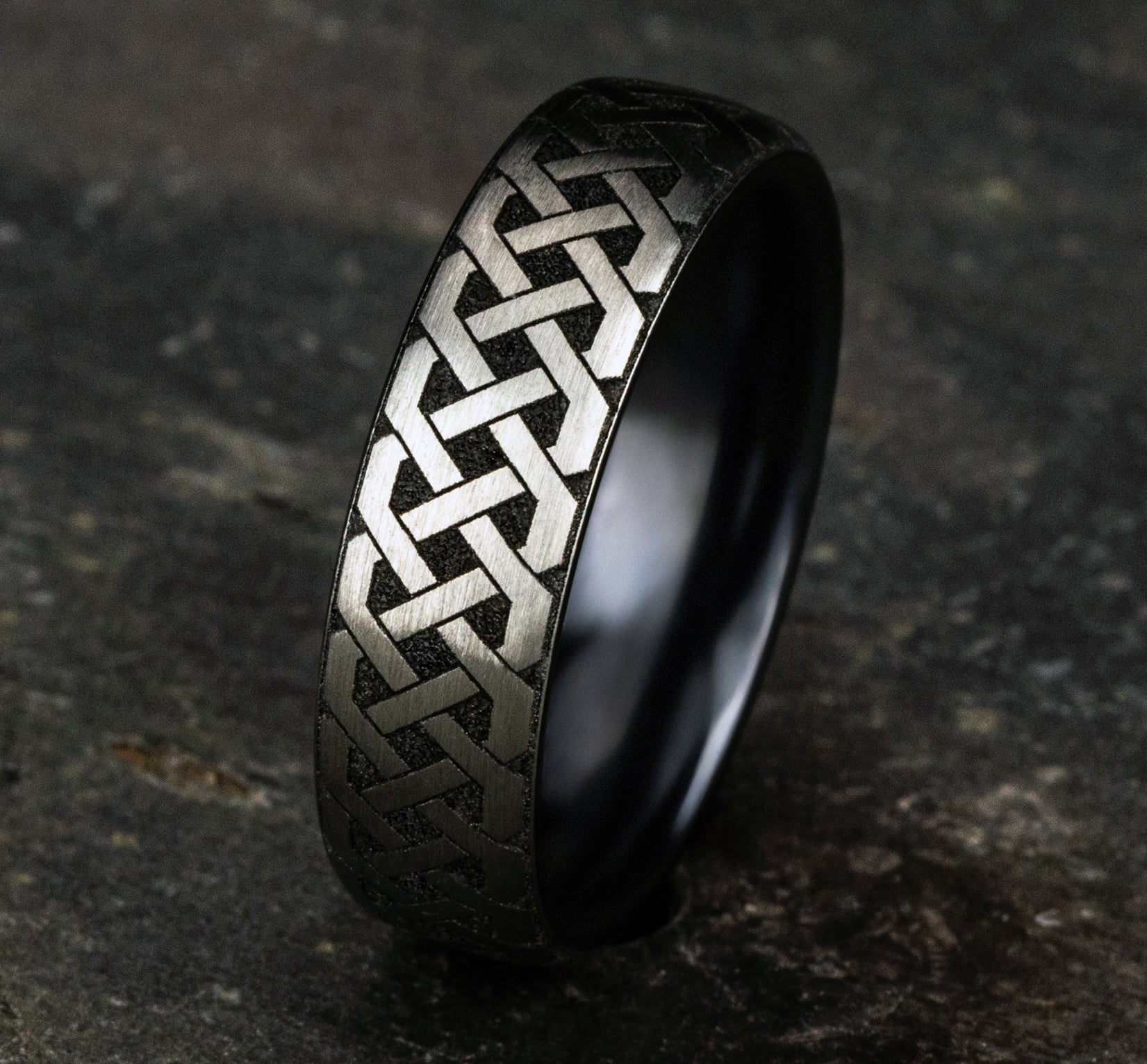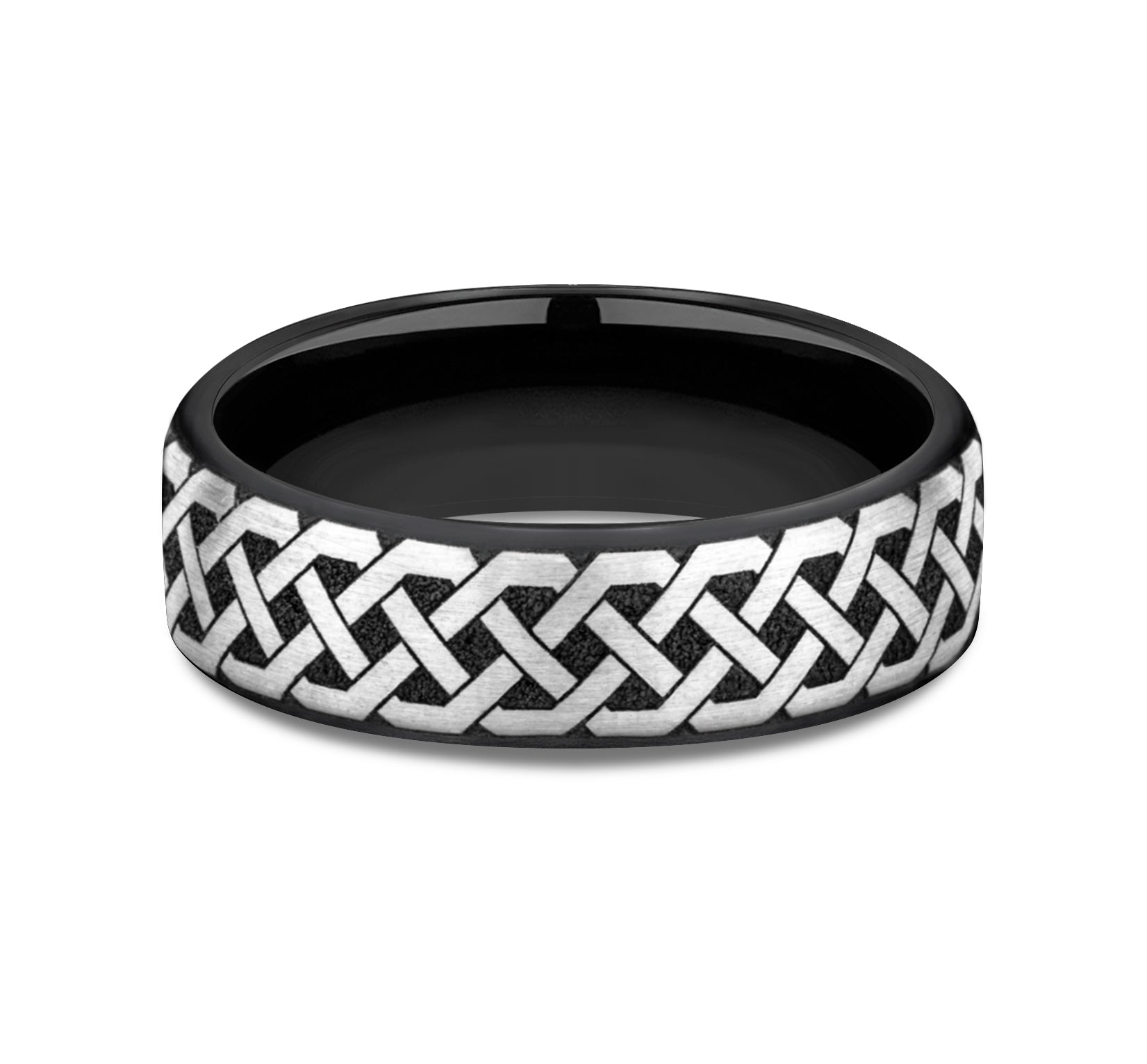 6.5mm, European comfort fit Grey/Black Titanium Celtic knot pattern