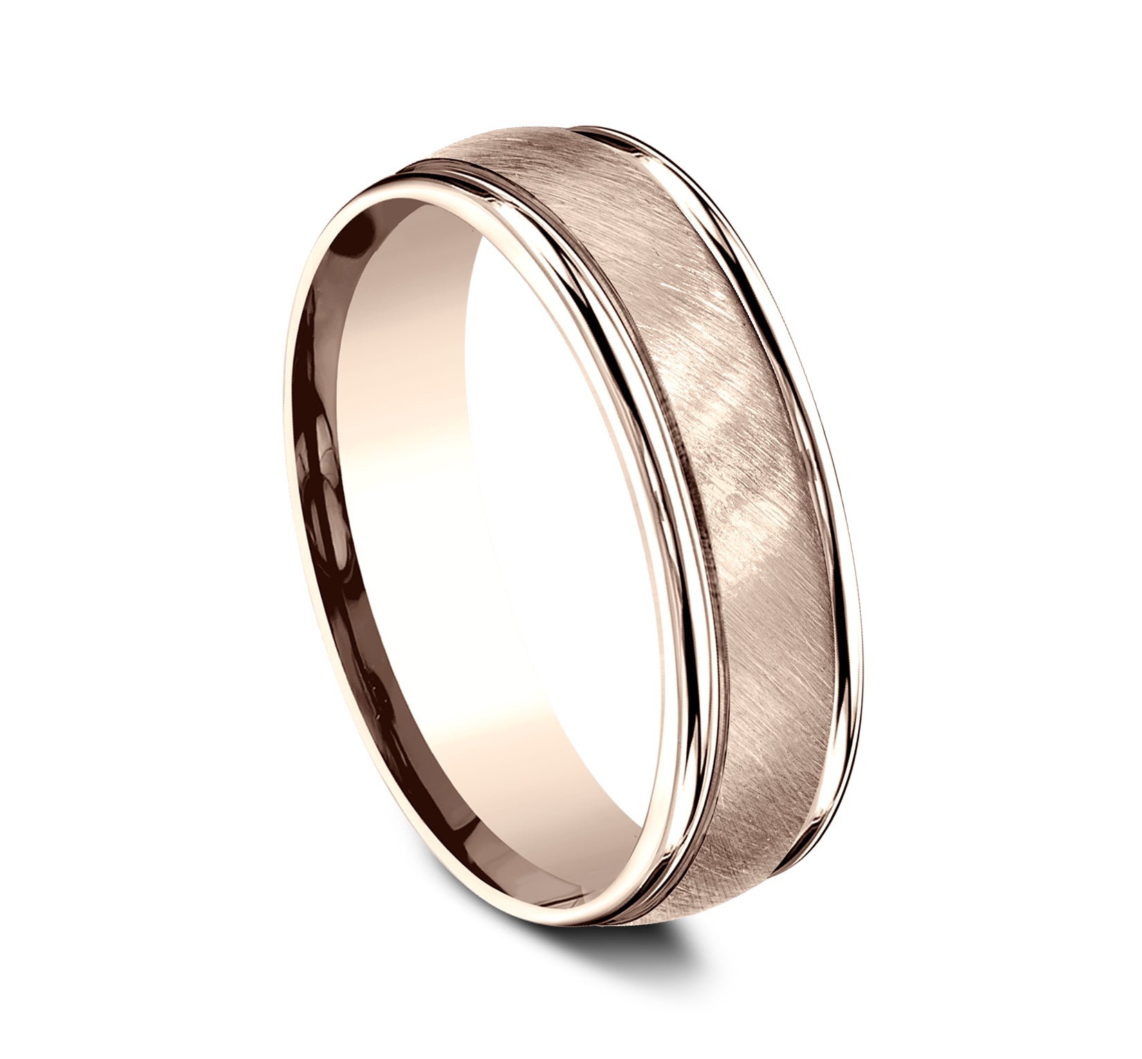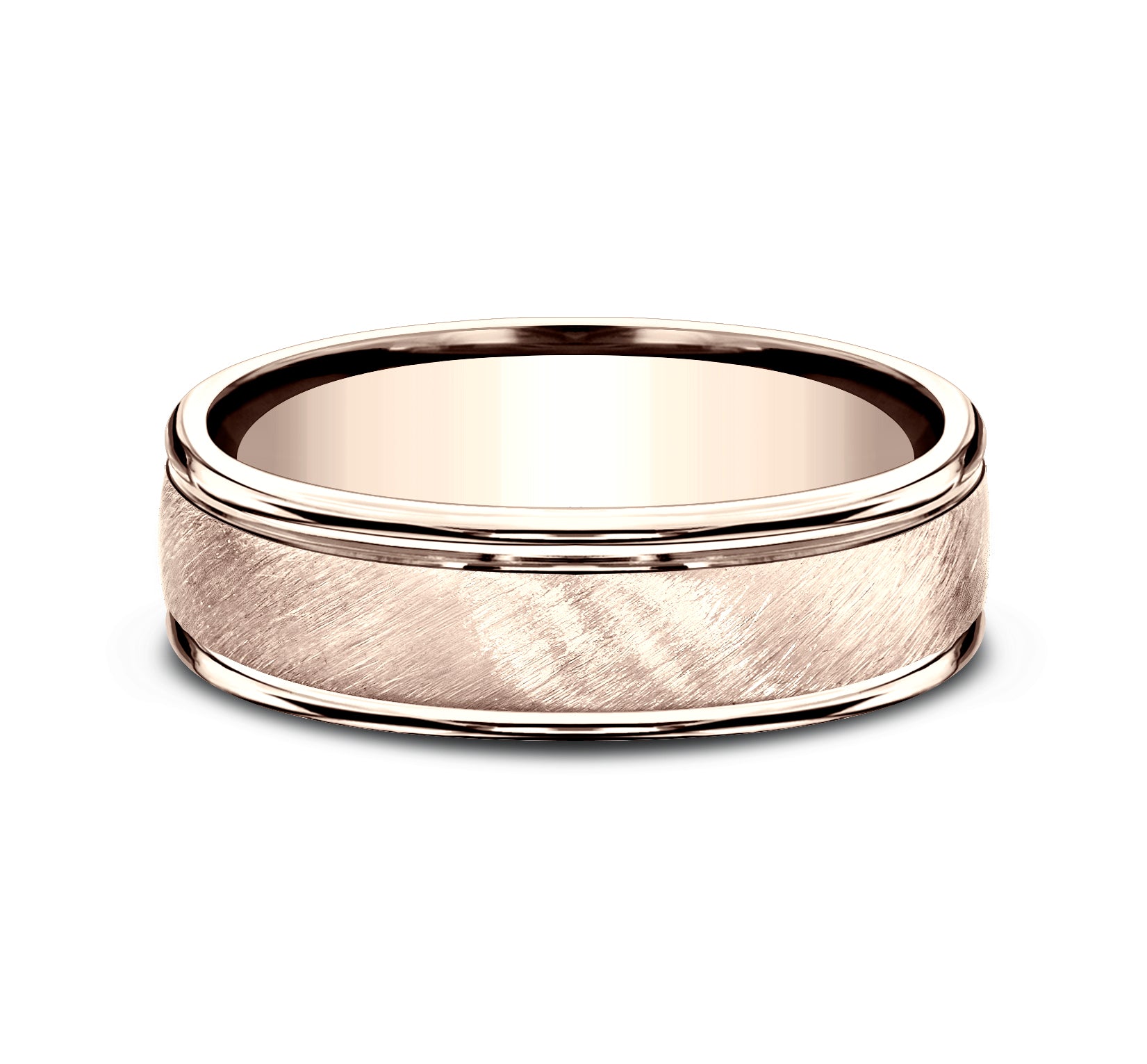 6mm, Comfort fit 14K Rose Gold Diagonal satin finish, polished round edges