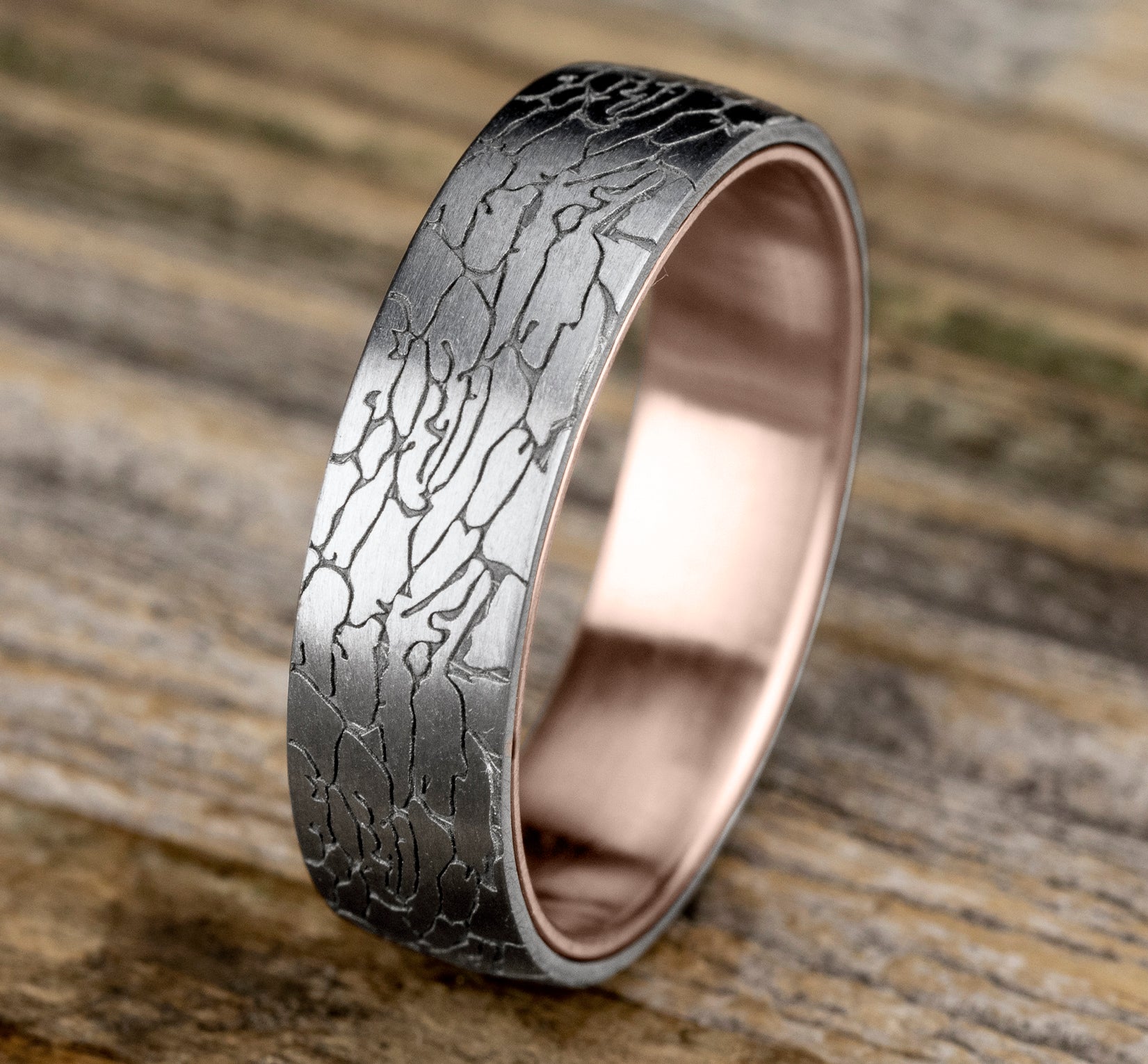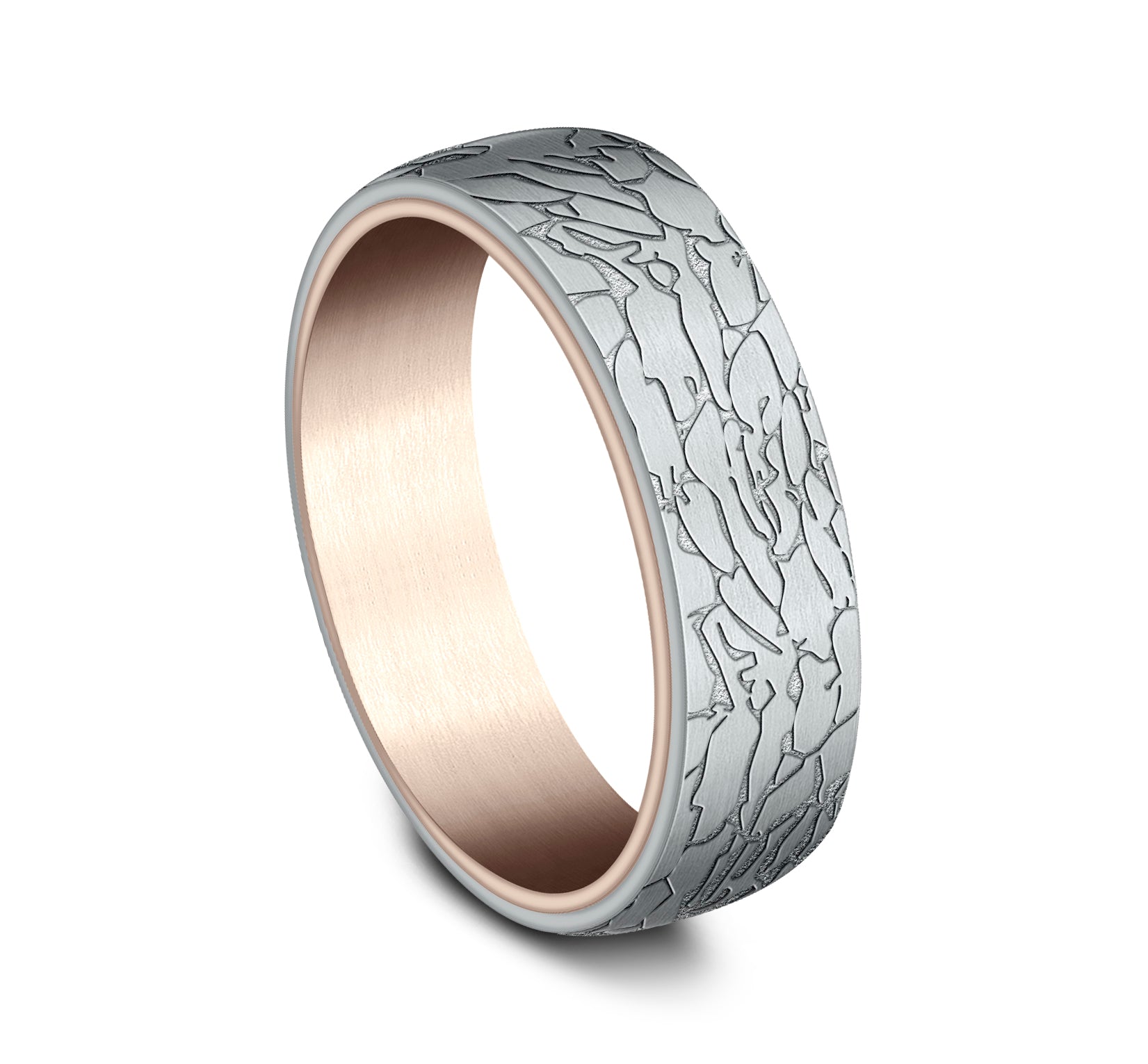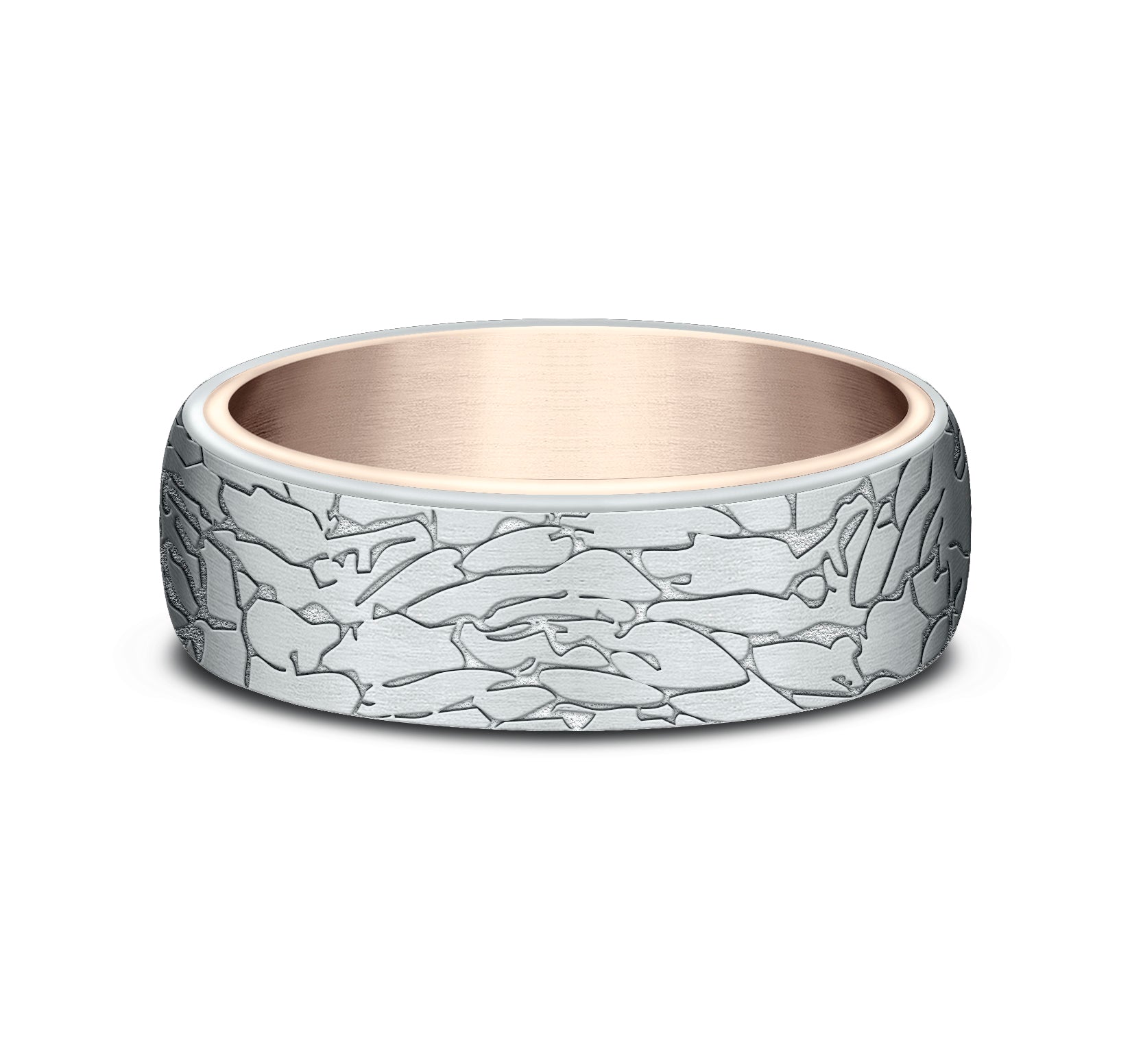 6.5mm, Comfort fit 14K Rose and White Gold Fractured rock pattern