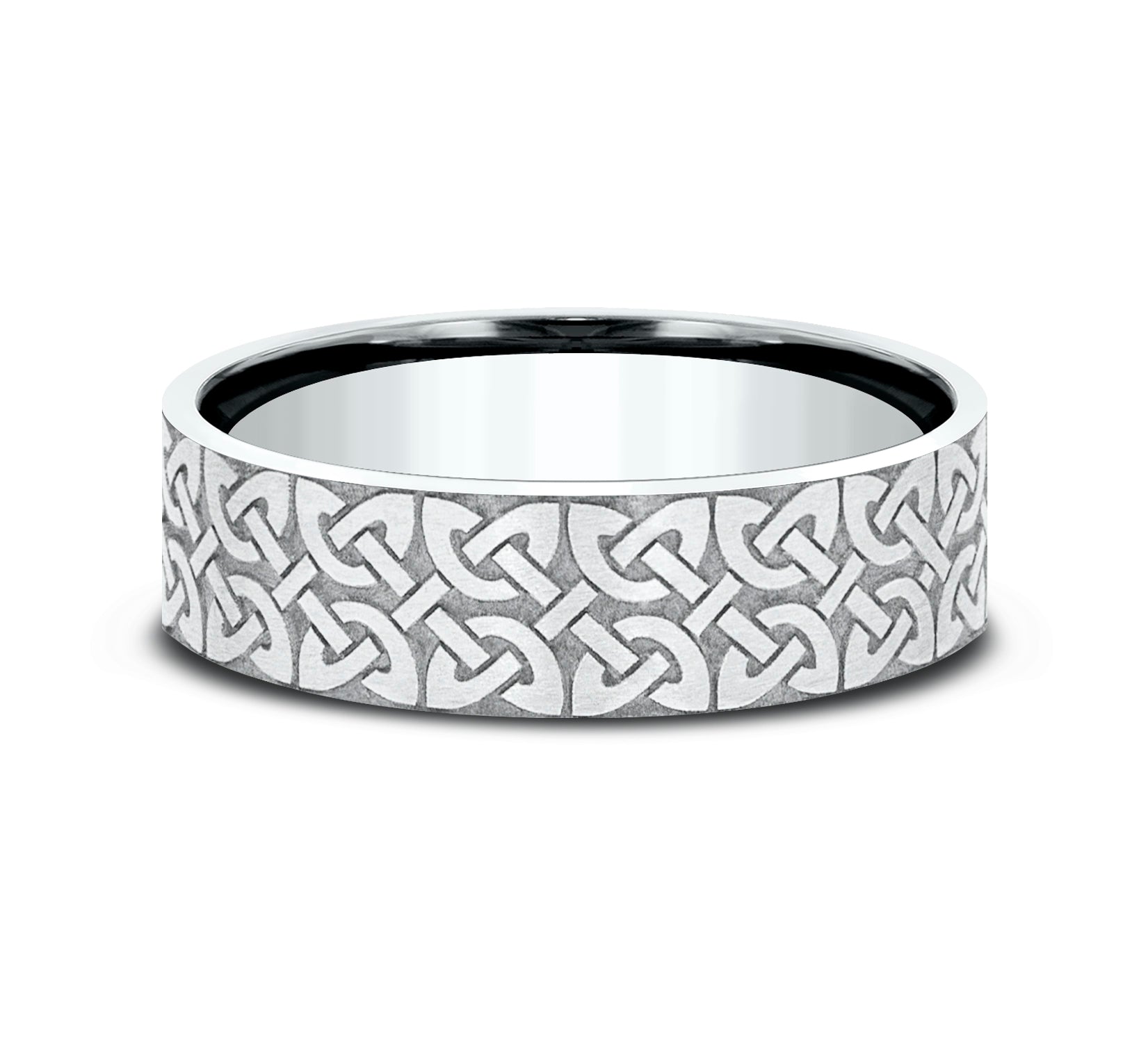 7mm, Comfort fit 18K White Gold Quaternary knot designed center