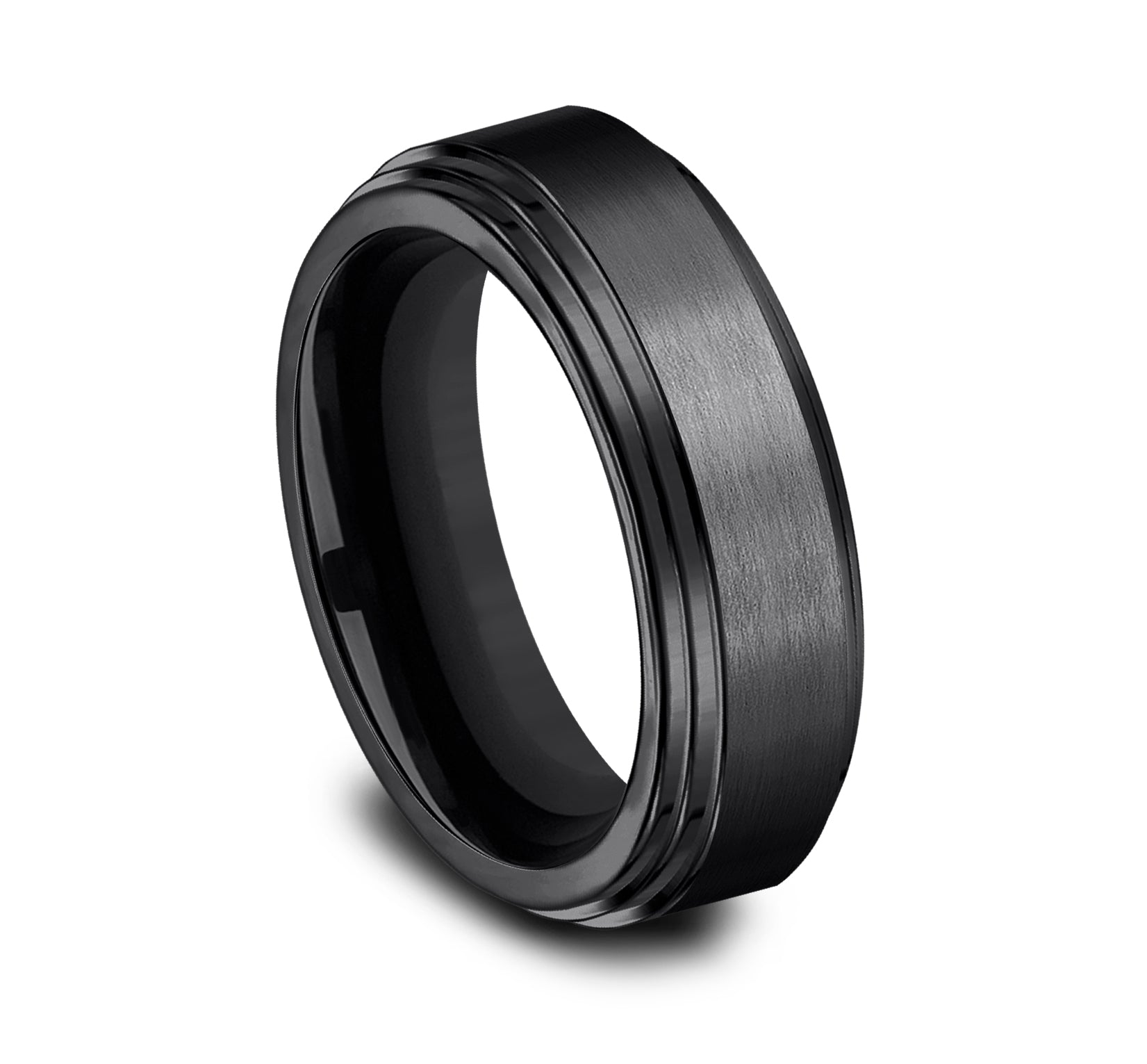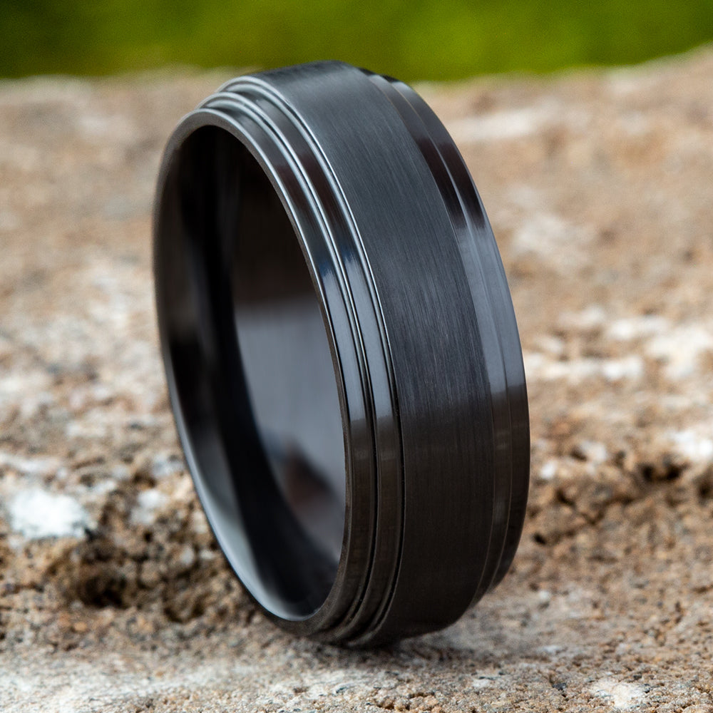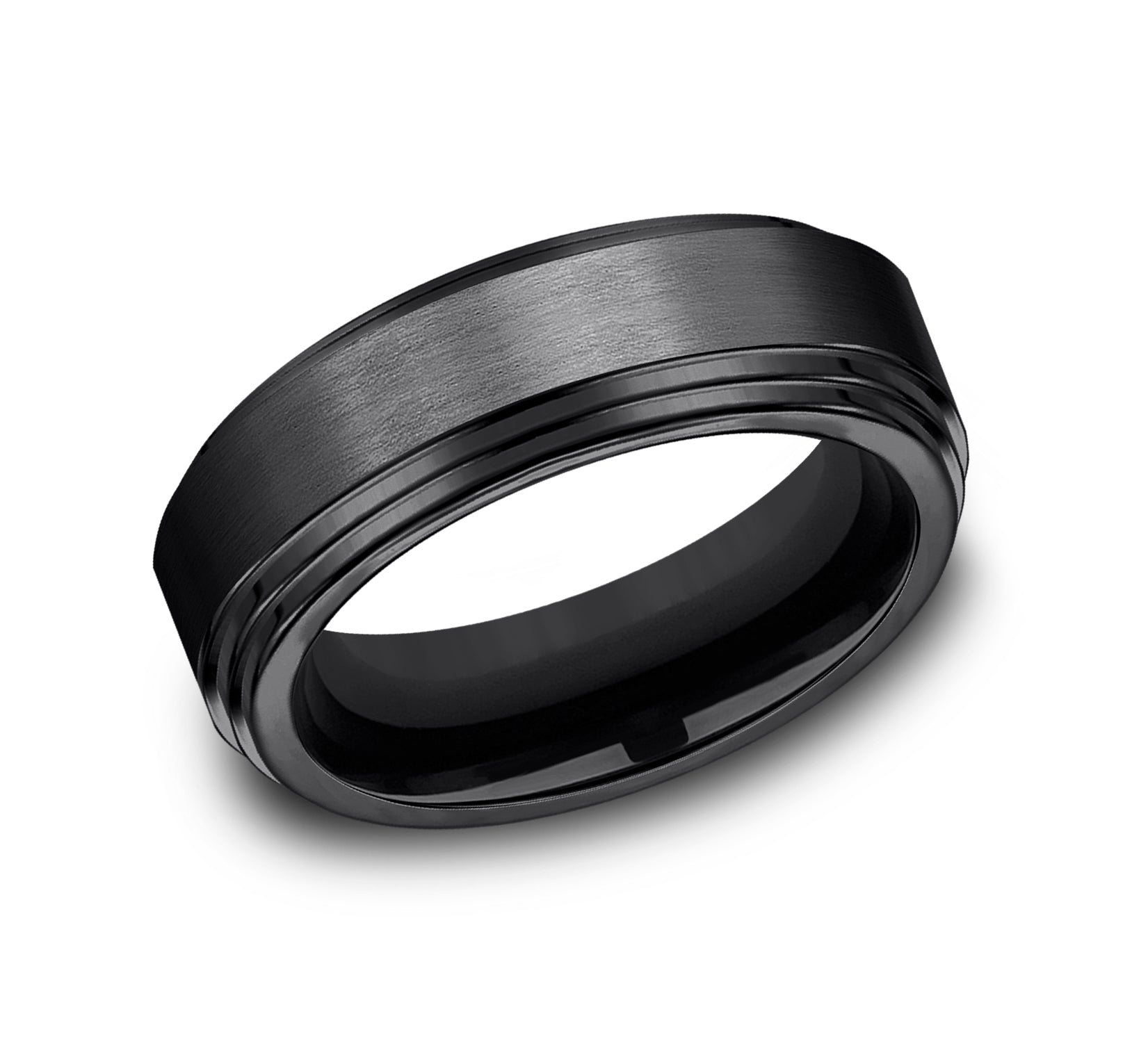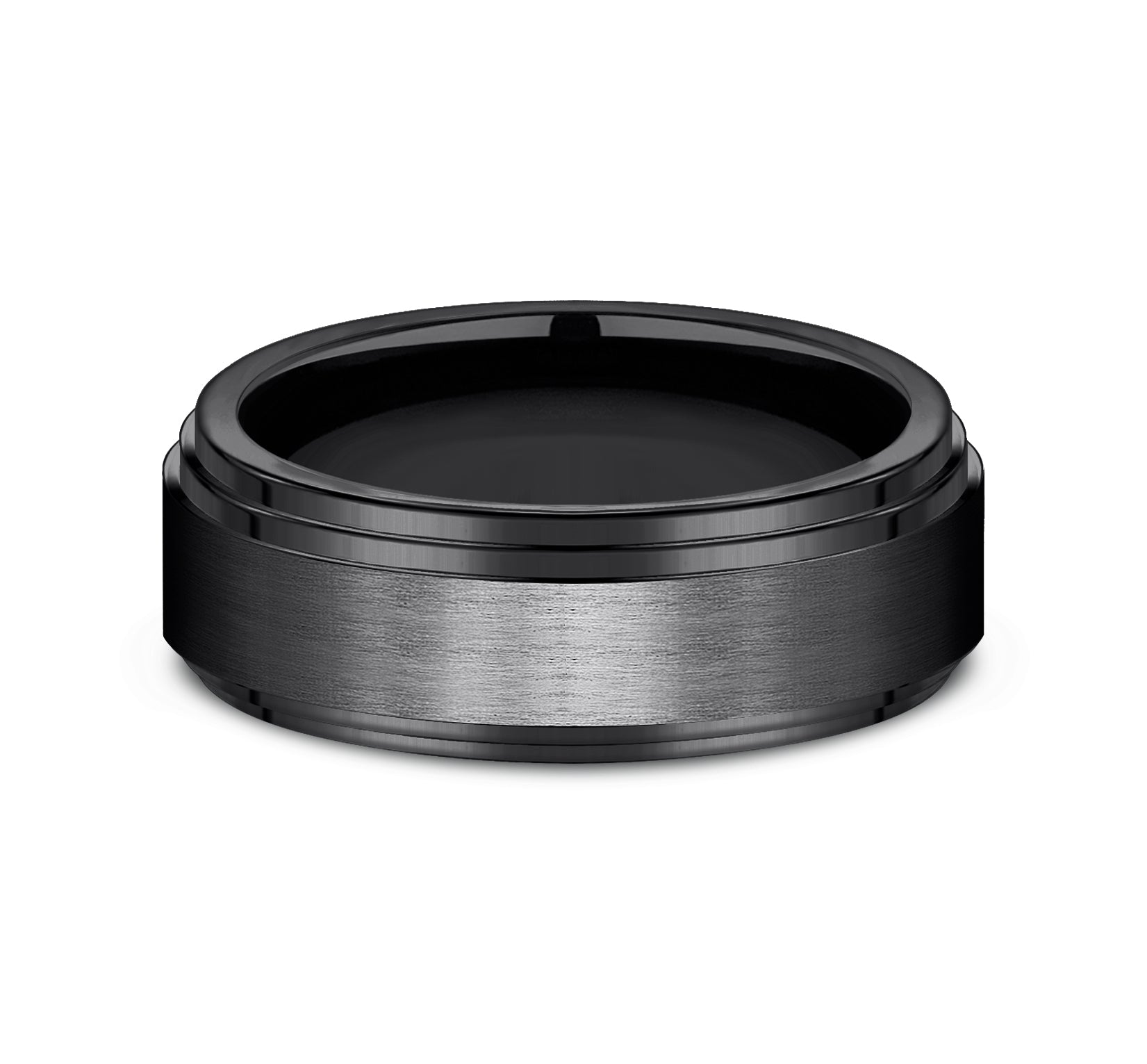 8mm, Comfort fit Black Titanium Satin center, polished double bevel edges