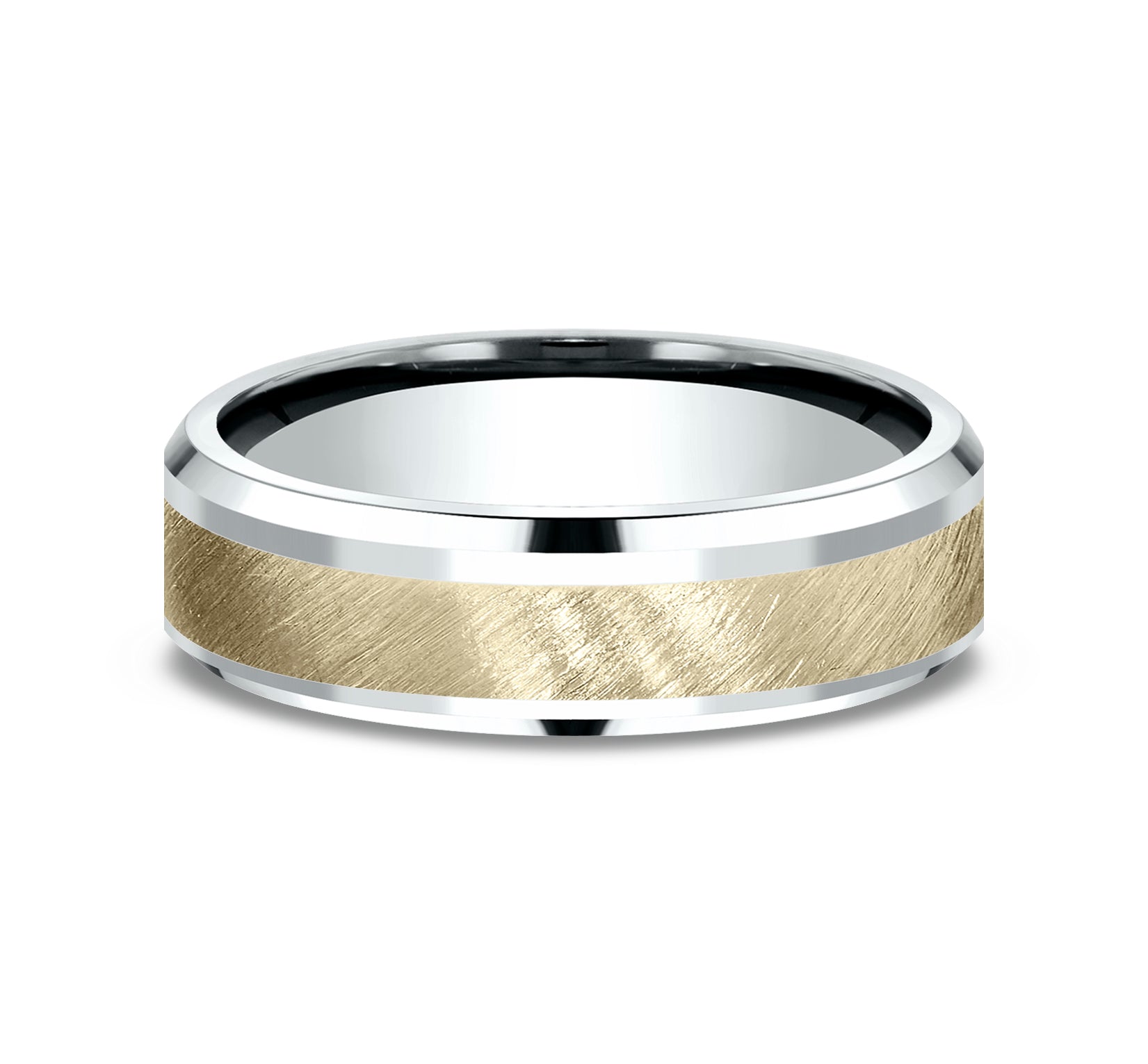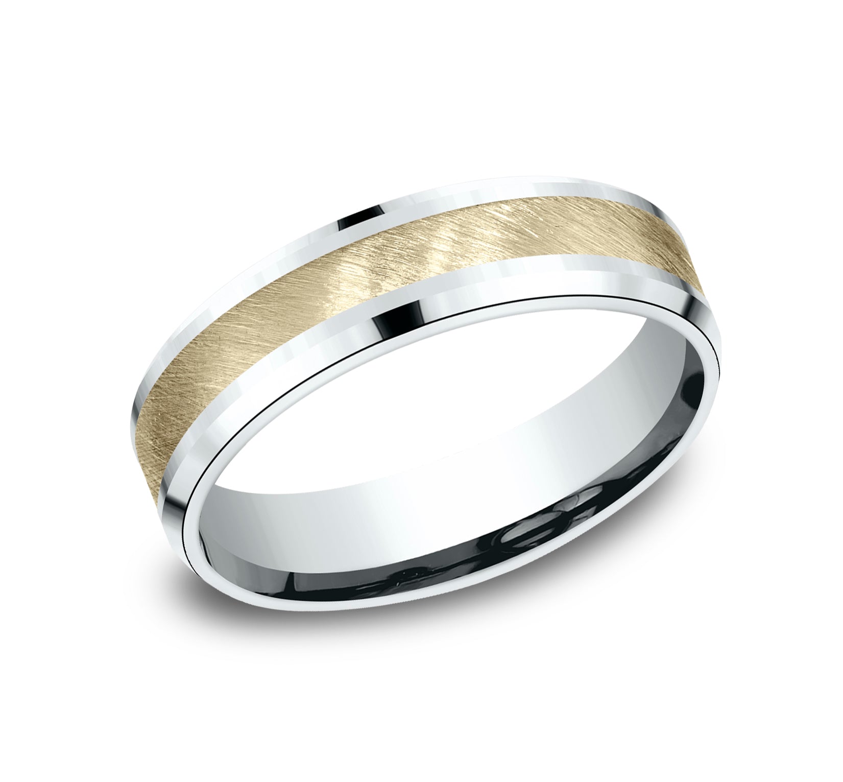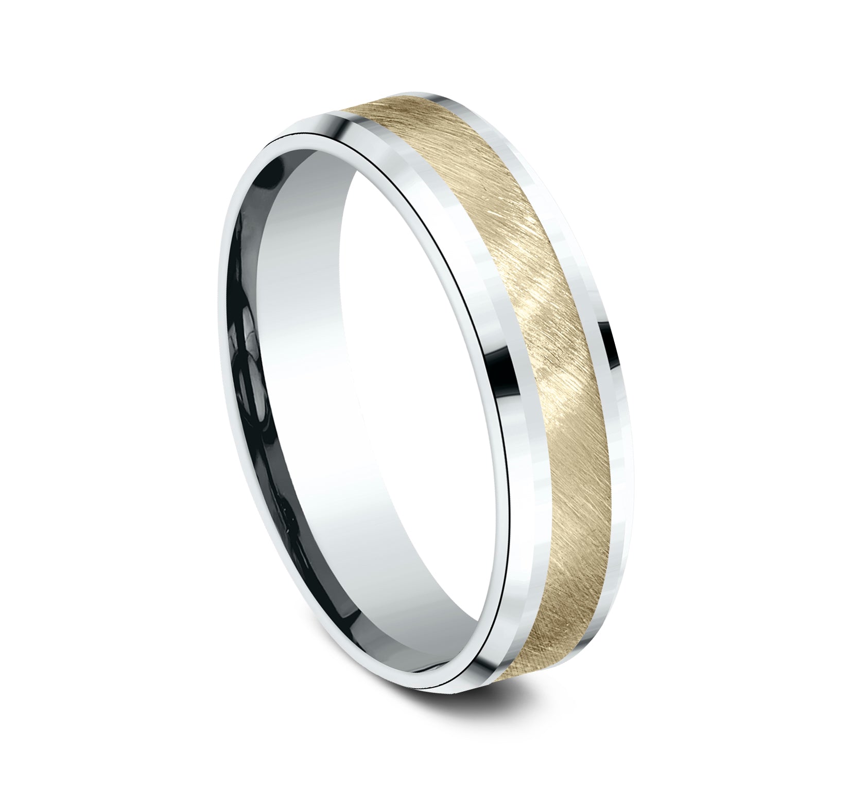 6mm, Comfort fit 14K White and Yellow Gold Diagonal satin finish, polished bevel edges
