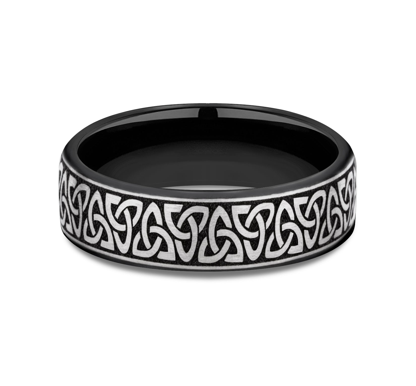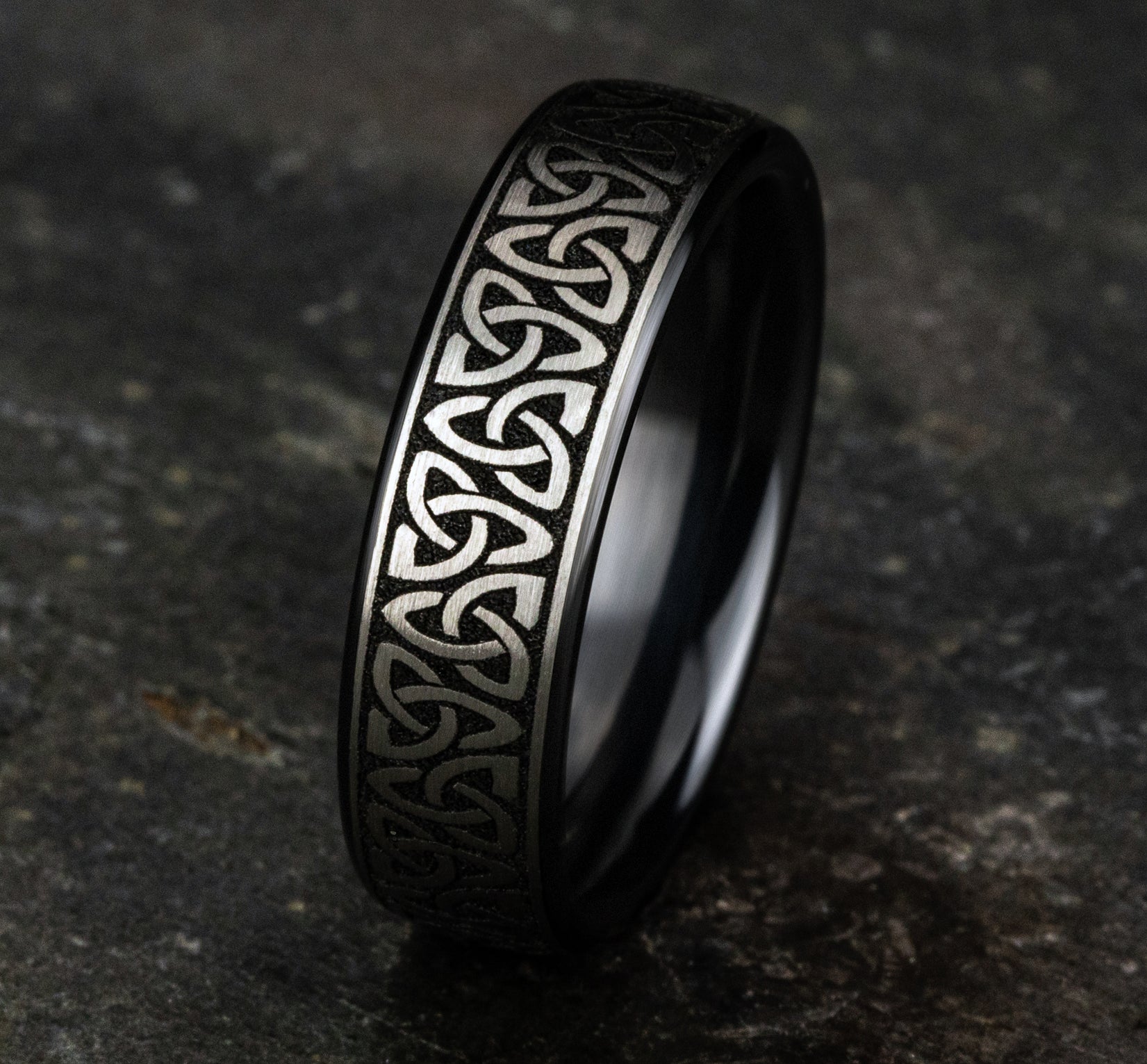 6.5mm, European comfort fit Grey/Black Titanium Celtic knot pattern