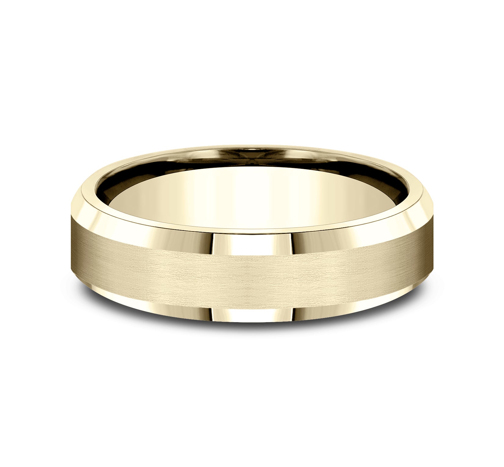 6mm, Comfort fit 14K Yellow Gold Satin center, polished bevel edges