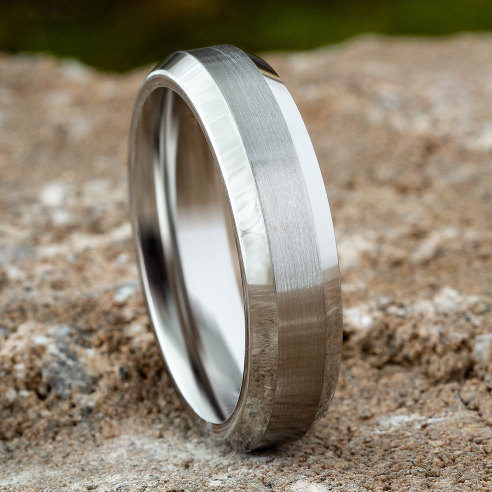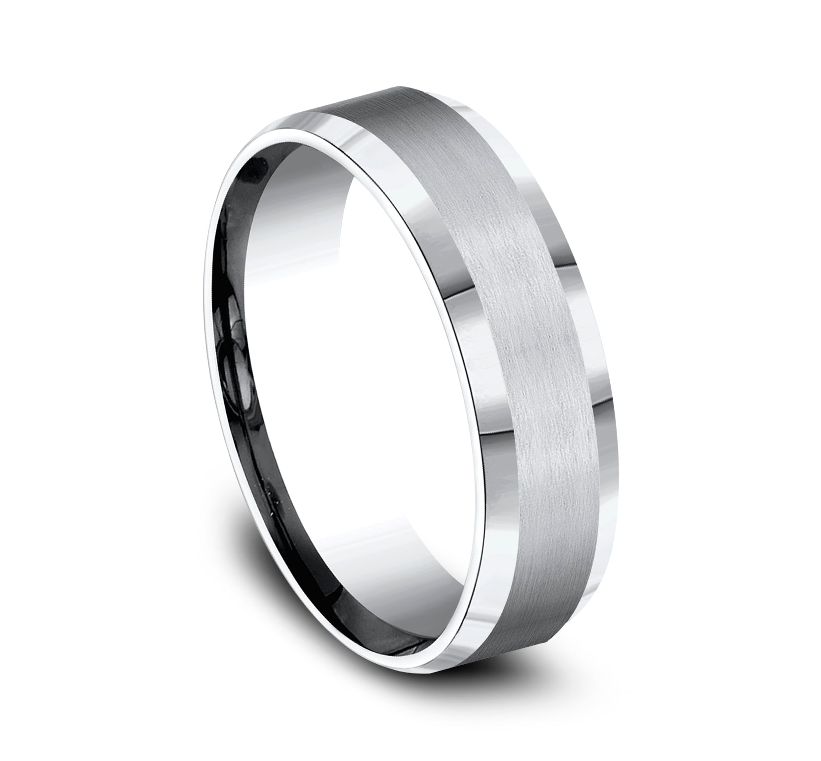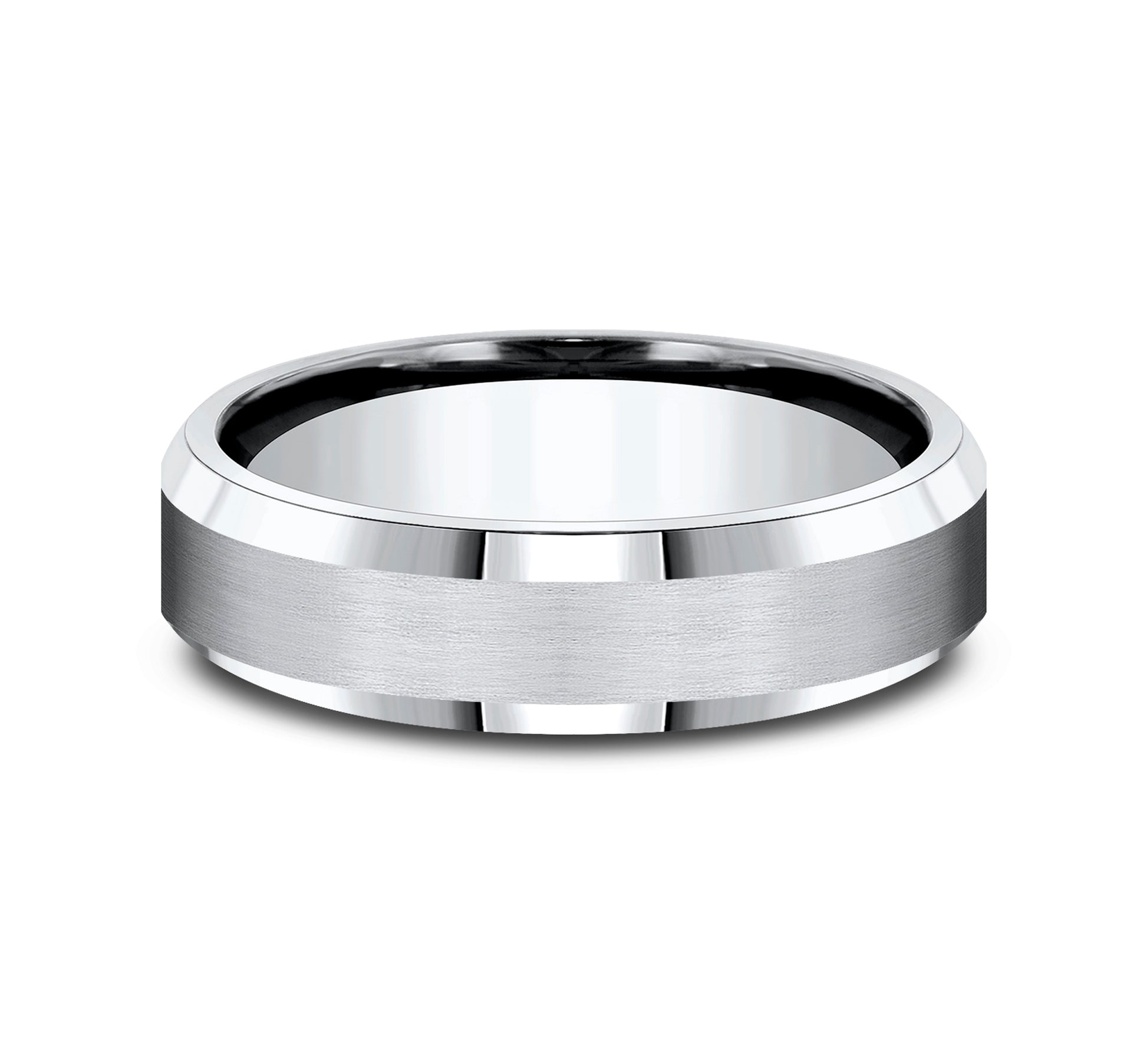 6mm, Comfort fit White Cobalt Satin center, polished bevel edges